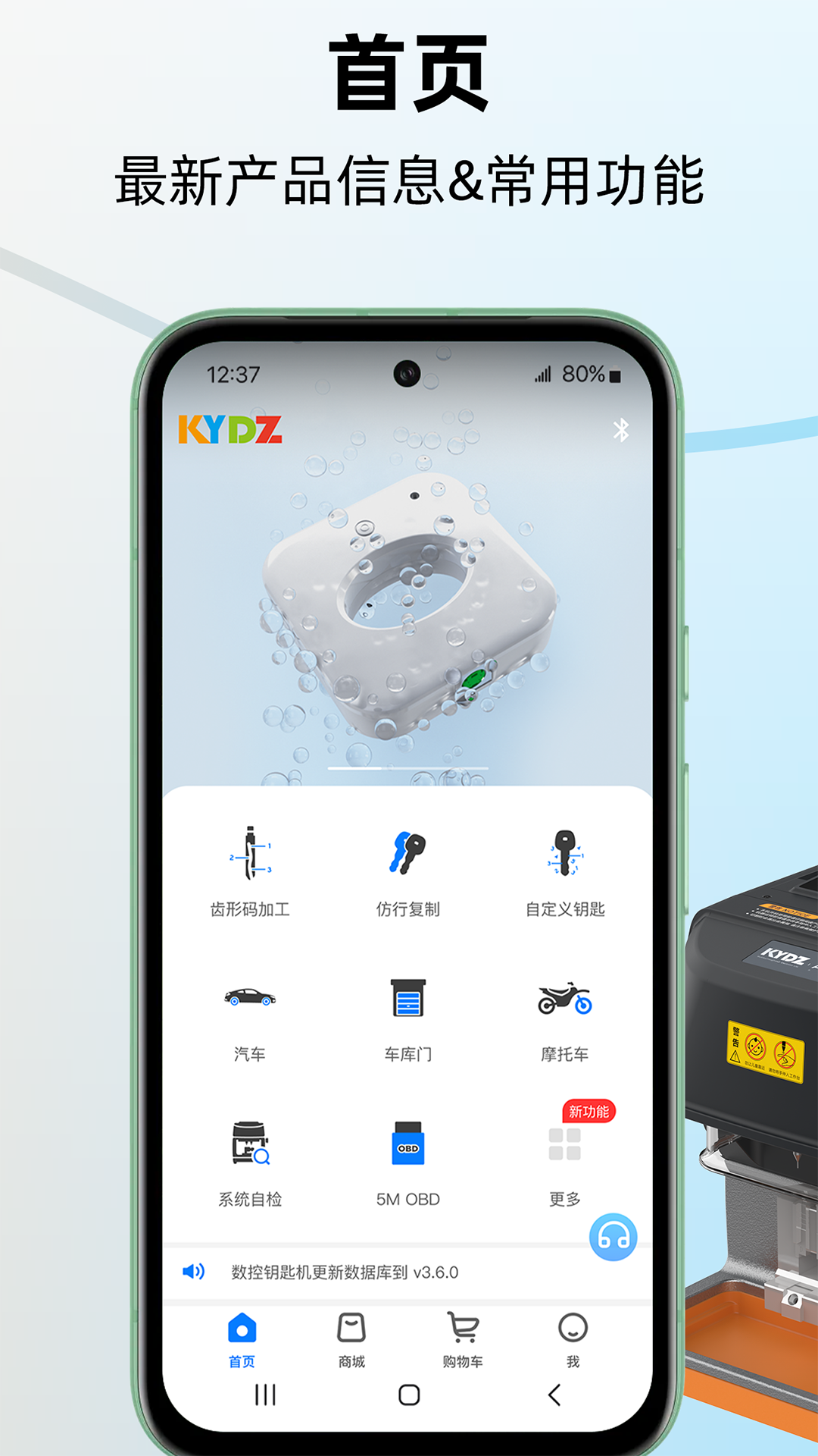 KYDZ是凯扬电子推出的一款服务于全球汽车锁匠的高效App。它能够借助蓝牙连接Alien钥匙机与KYDZ生成器,进而达成汽车遥控生成、智能卡生成、钥匙仿形切割等功能。