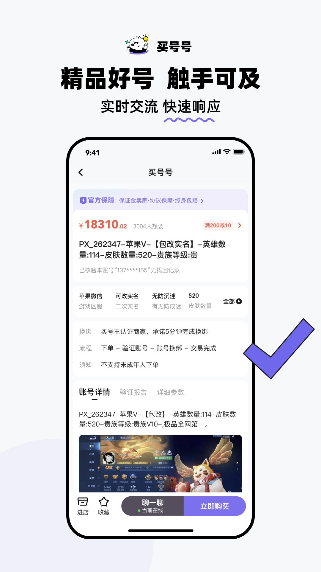 【安心购号】账号交易永久包赔,每笔交易都签署协议,有多重安全保障,让您售后无忧。