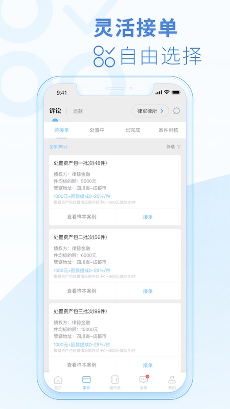 海量金融案件、灵活接单、高效管理