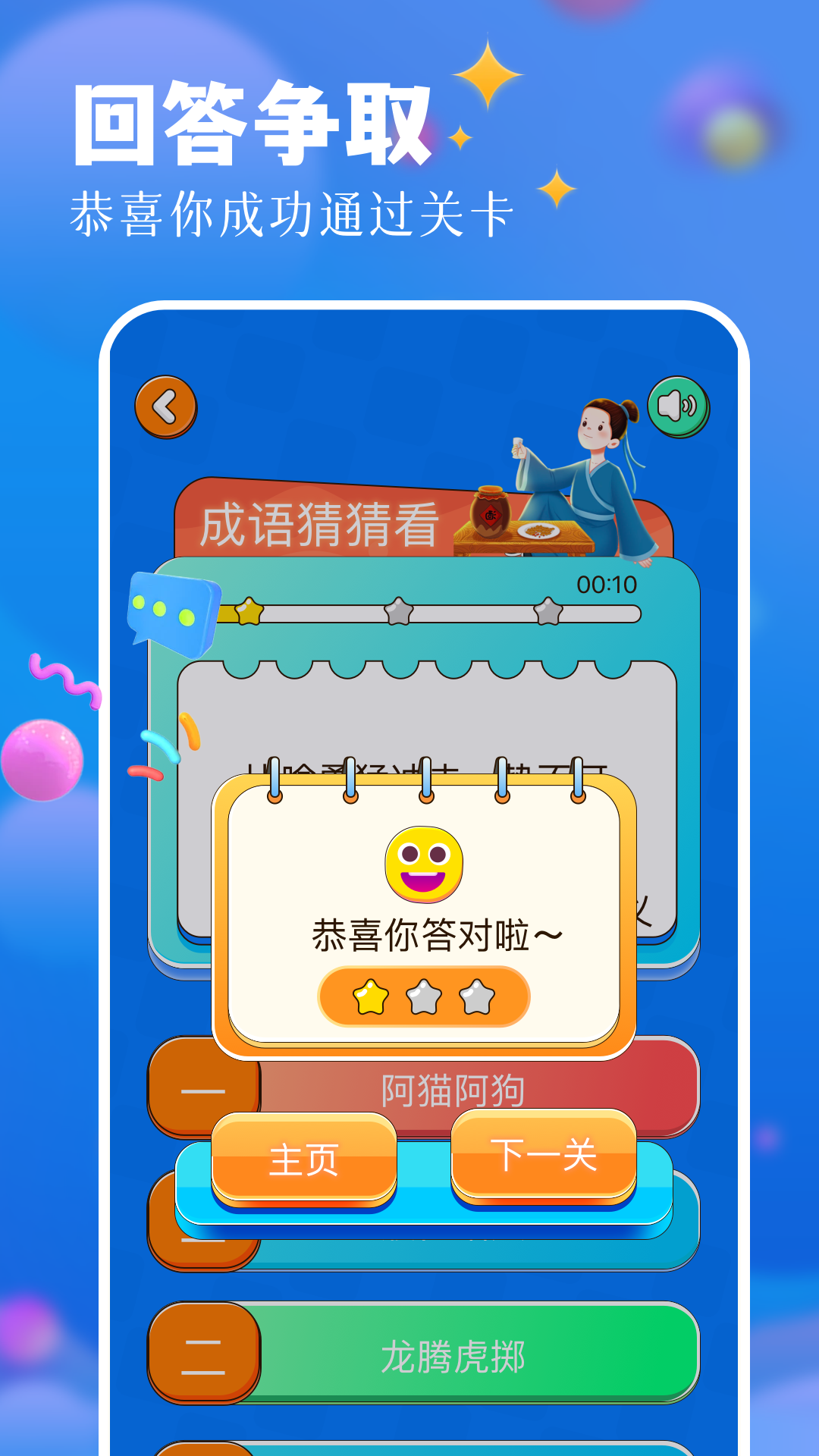3343乐园是一款休闲益智类的成语组词闯关APP。在汉语里,简单的四字成语往往蕴含着中国古代的历史故事,富有哲学意义。在这个APP中,你能够挑选自己喜爱的成语开展接龙闯关游戏。每成功完成一个关卡,就能获取相应的奖励,让你在愉悦的氛围里学习,进而了解更多的成语知识。