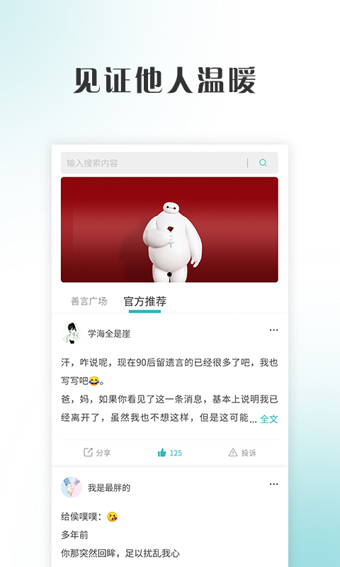 善言软件内部设有公开广场,在这里大家可以查看他人愿意公开分享的遗言内容。