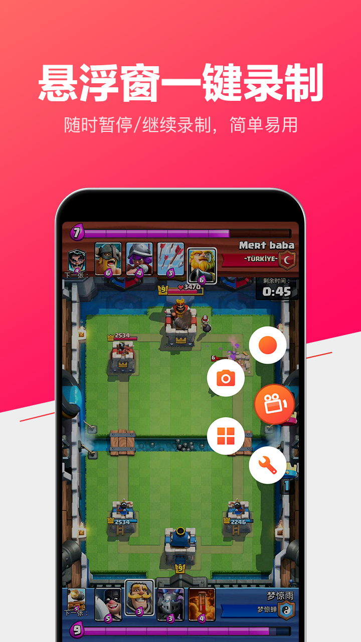 具备一键录屏截屏功能,悬浮窗小巧、轻便又简约,在录制的时候还能够将悬浮窗隐藏起来。