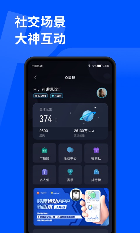趣味社交场景:您可以在运动星球里构建属于自己的运动天地哦。