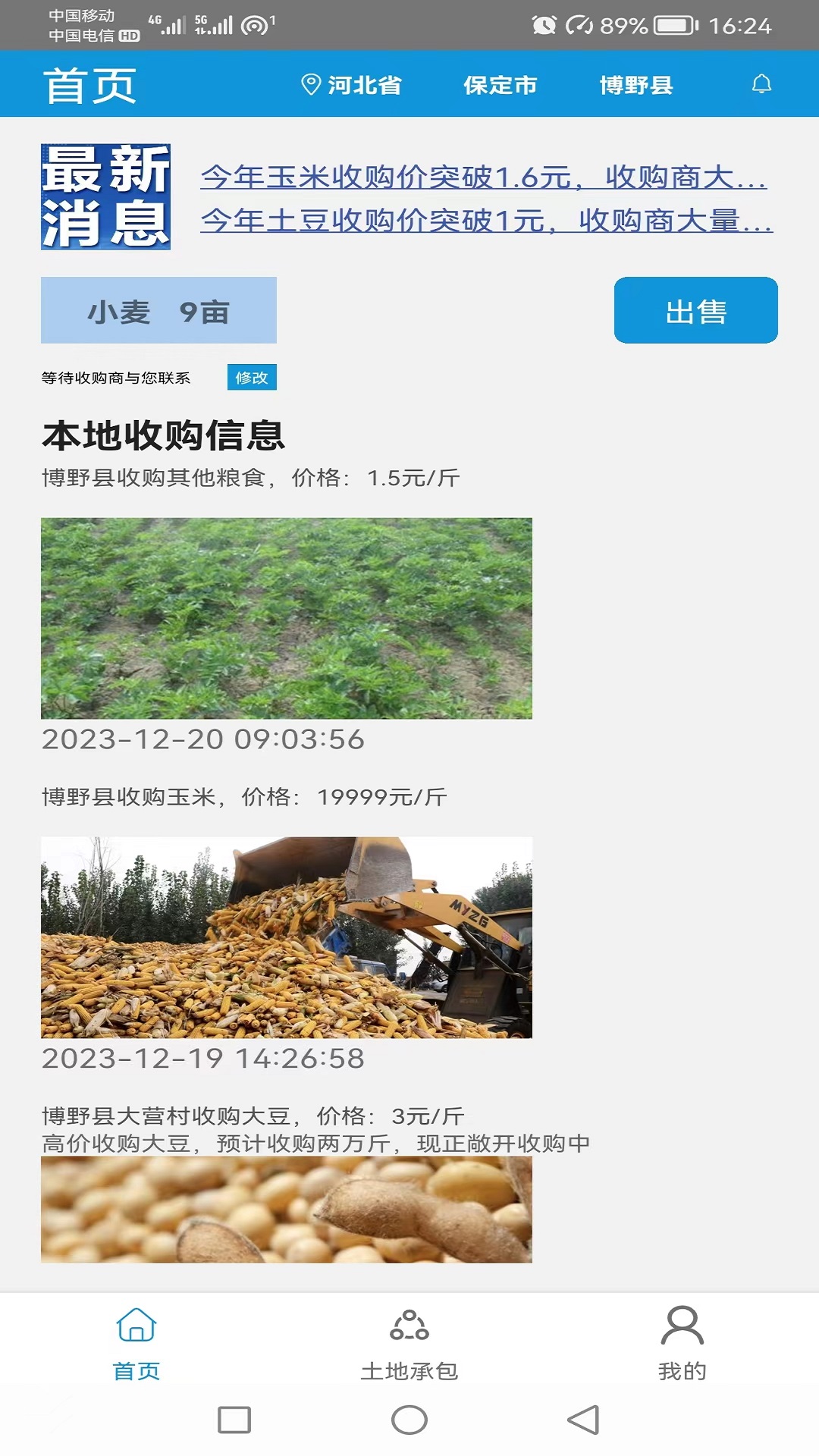卖粮食APP软件,其主要功能在于为粮食种植户提供助力。在特定的行政区划范围内,种植户能够发布自己所种植并收获的粮食相关信息,这些信息可供粮食收购商查看,如此一来,粮食的出售效率便能够得以提高。与此同时,种植户还可查看粮食收购商所发布的收购意向。另外,该APP软件还能帮助农户查看本区域内的土地承包状况,从而协助农户开展土地流转工作。