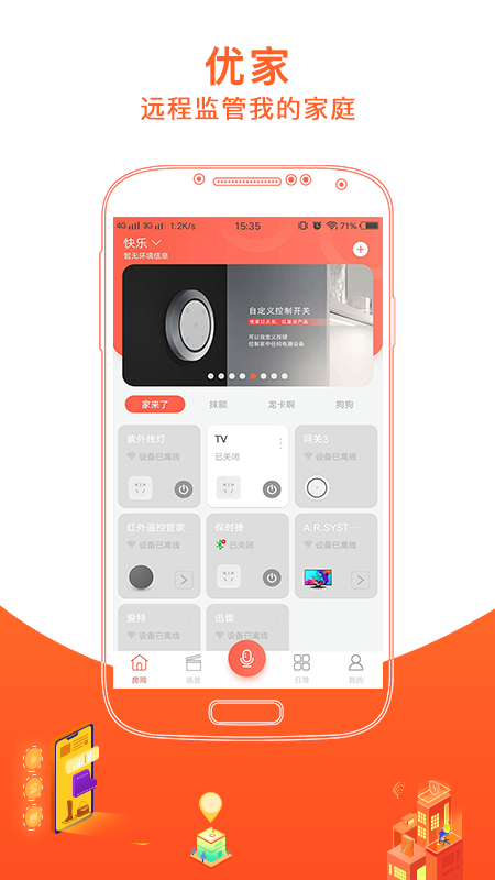 恋恋优家是一款智能生活APP。通过它,您能够远程控制家中的插座、空调、电视、灯具等各类电器,还能实现感应温湿度、报警提醒、查看视频监控以及人体感应等功能。使用恋恋优家,您可以更安心、更随性地掌控家中的一切事务,随时随地监控家里的情况,查看家人的动态。