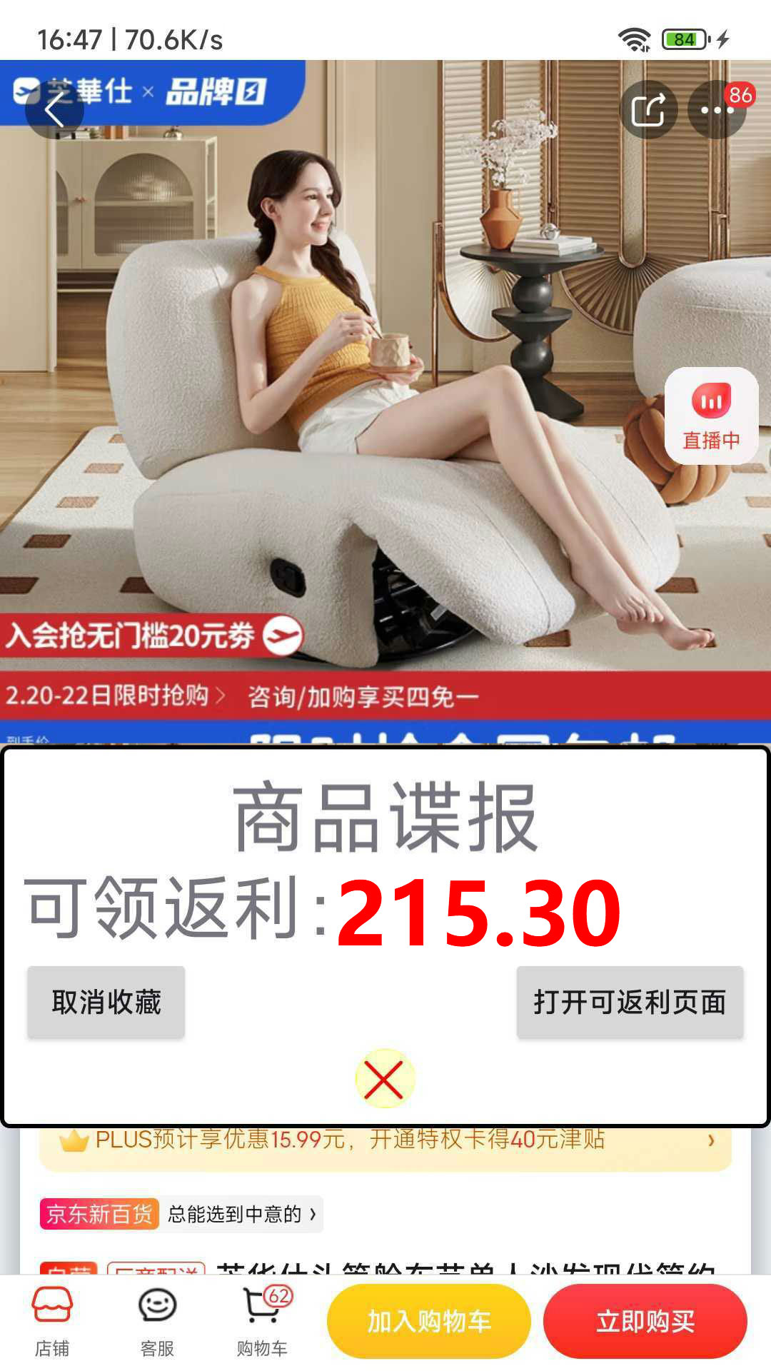 传统的返利方式是需要切换APP才能获取返利信息的,而我们的应用却不一样哦。在我们的应用里,用户仅需在商品详情页点击我们的悬浮按钮,就能够快速获取返利信息了。