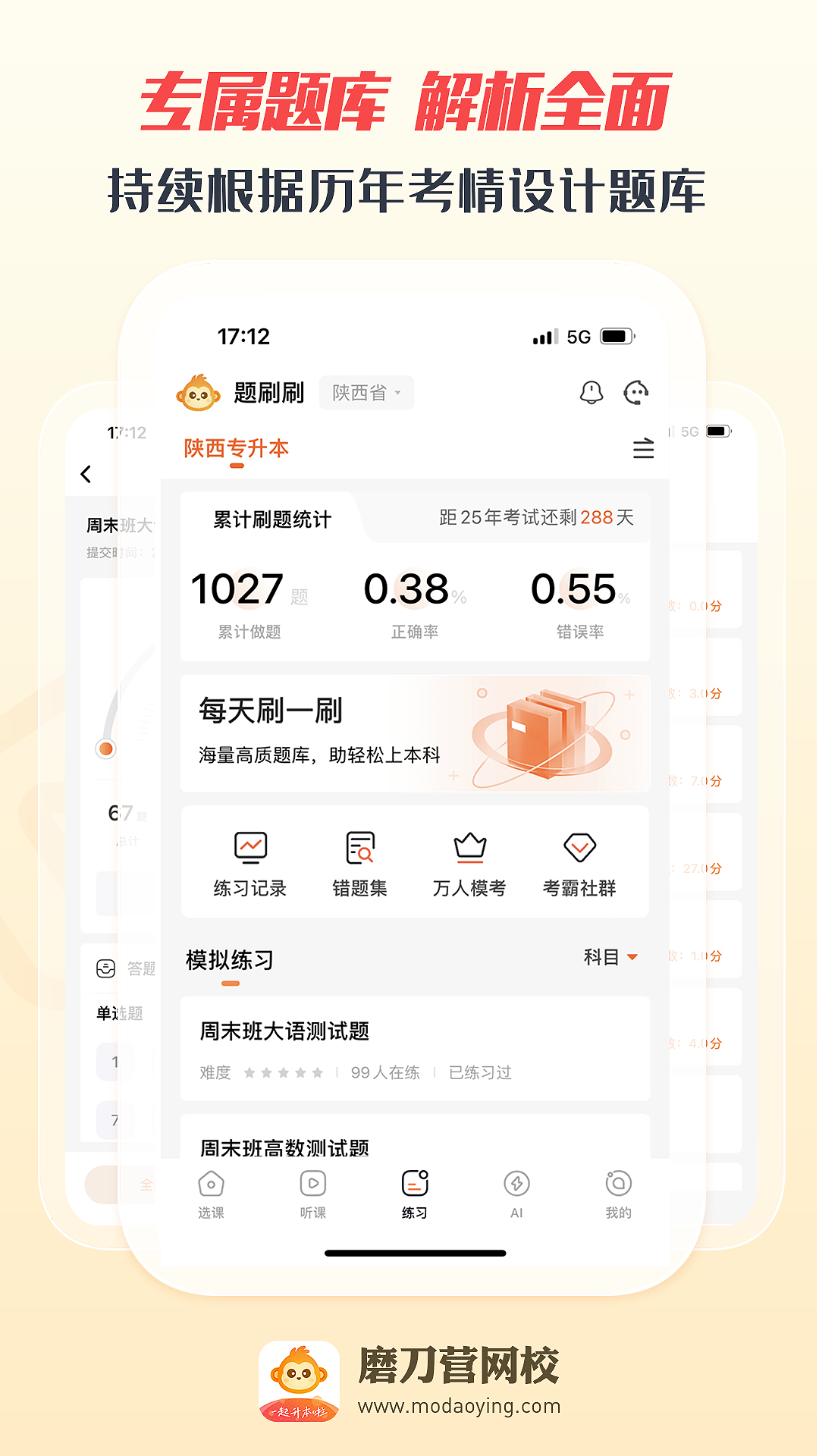 你是否存在基础不好的情况?是不是没时间参加面授课程?或者觉得面授地点太过遥远?又或者要去实习?想要24小时查漏补缺吗?还想免费学习AB级、4/6级课程吗?如果是,那么专升本学习的首选必定是磨刀营网校APP。