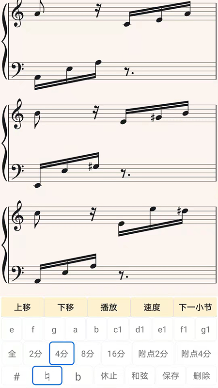 使用者能够直接借助软件中的钢琴键盘进行作曲操作,所作曲子会以标准的五线谱形式呈现。而且,曲子能够被播放、修改速度,还可以将其保存为图片等。