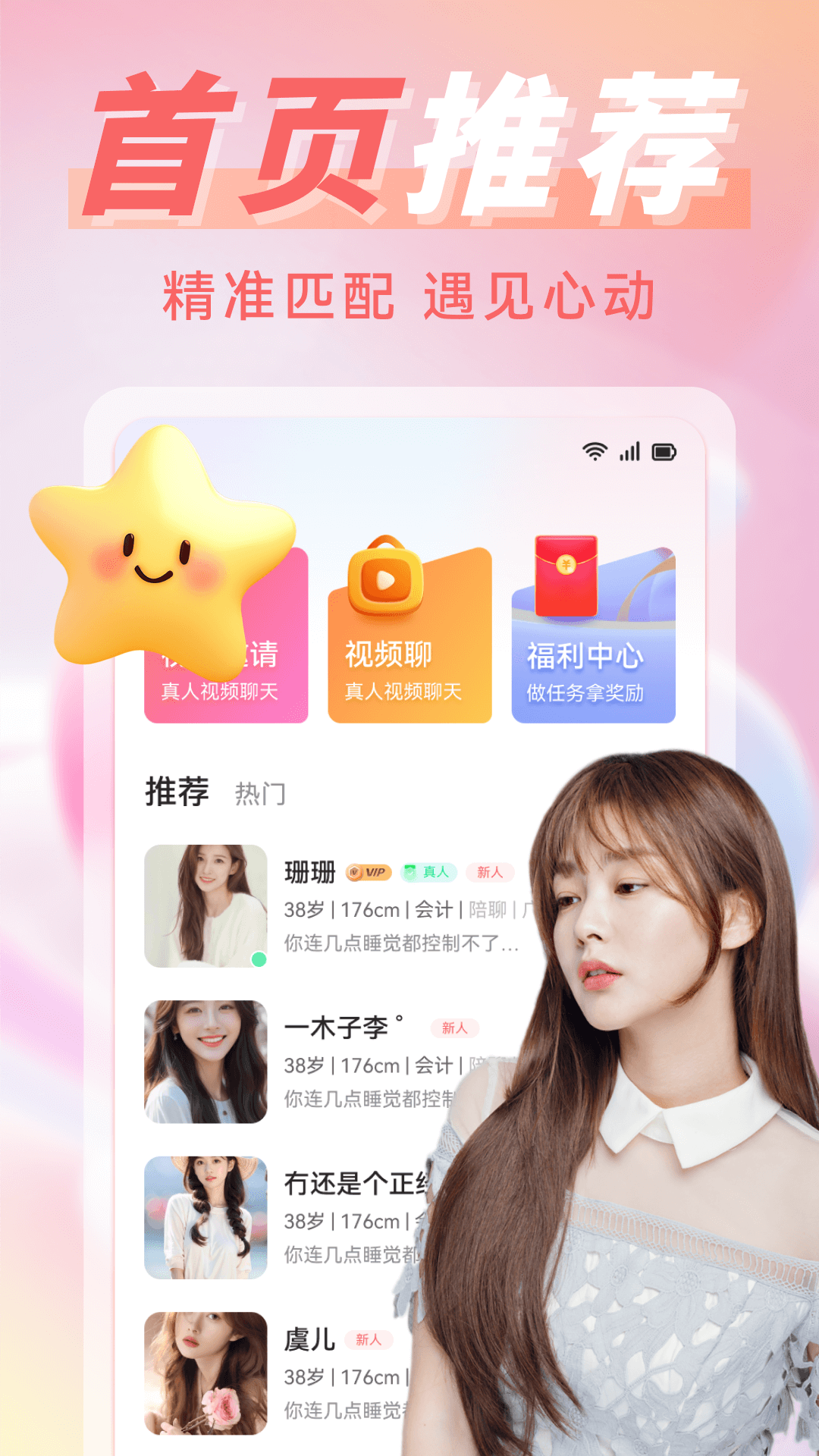 寻觅心动的灵魂伴侣,马上开启视频或者语音聊天,与对方顺畅互动,让每次连接都满是惊喜!