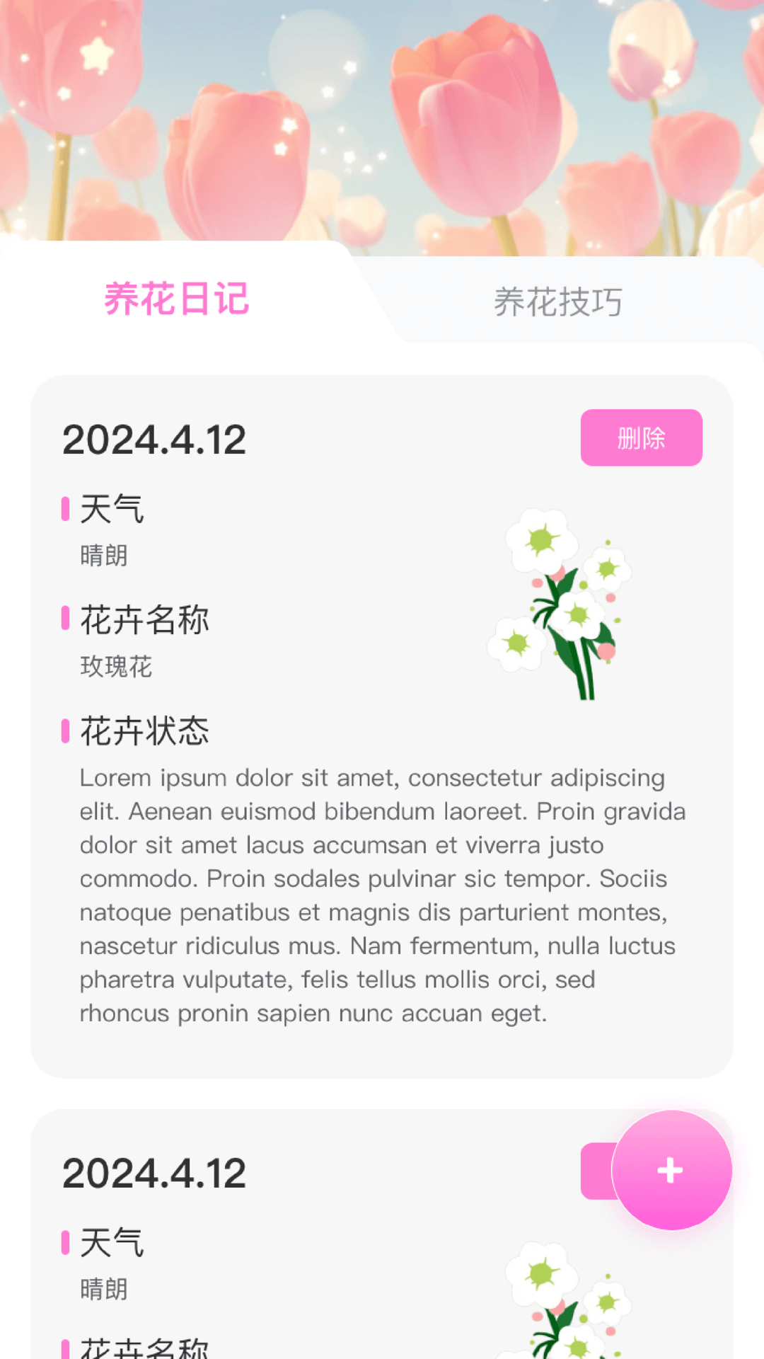 甜心花朵是一款与花有关的工具类软件,具有甜心花朵,包括养花日记,记录养花的过程,让时间有迹可循,和详细的养花技巧;速识花朵,可以学习和认识常见的花朵,以及详细的花的介绍,喜欢的话,快来下载试试吧!