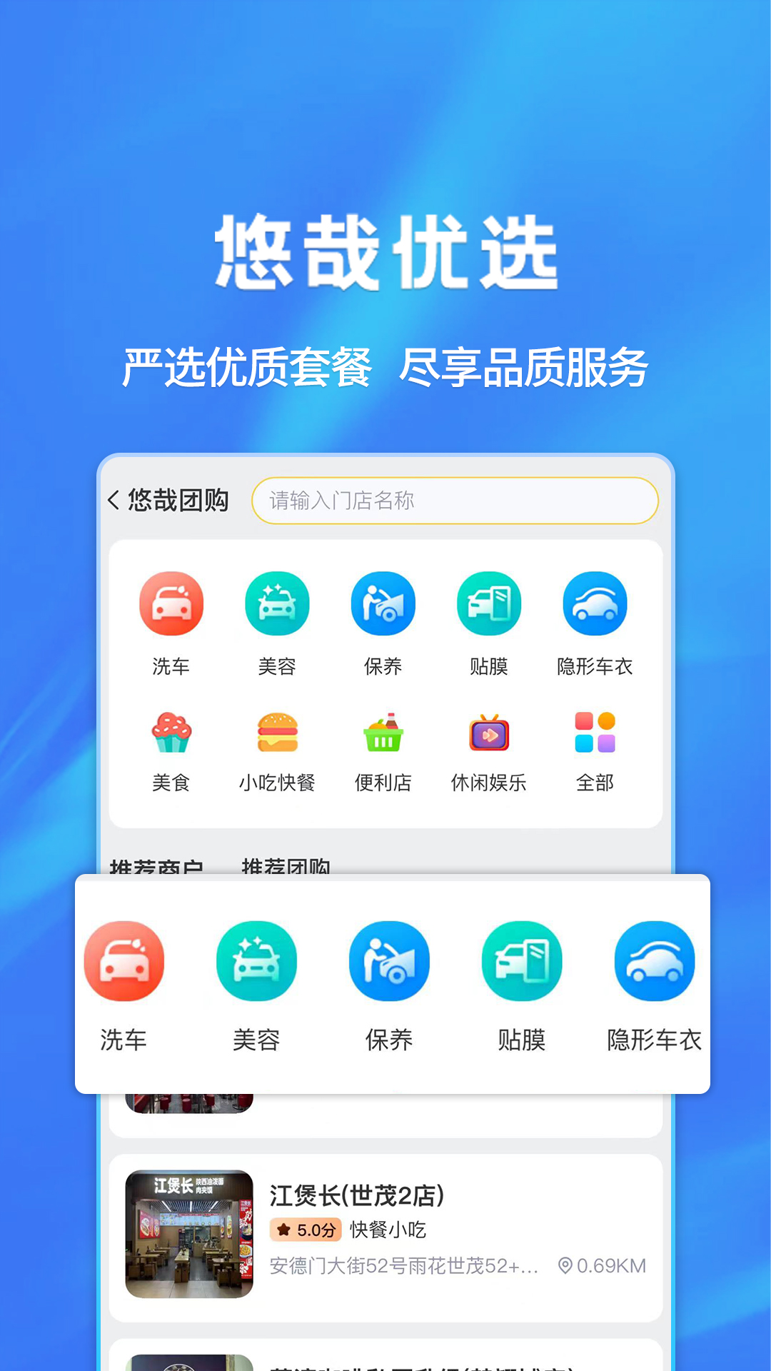 福利商城:入驻多家维修厂、保养连锁店、汽车美容等优质商家,精选上门洗车、汽车美容、保养维修等优质商品,线上预约,享专属优惠。