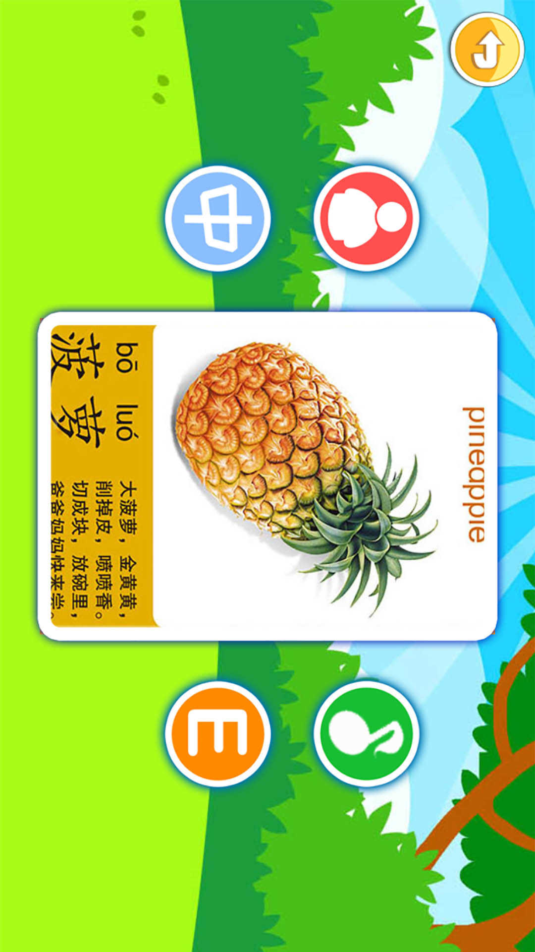在这个体验里,有好多有趣的玩法哦。首先呢,只要滑动手指,把礼物箱切开,就会发现里面藏着充满惊喜的水果。其次呀,这里还有水果和蔬菜认知的内容,并且配有中英文对应的卡片,能让宝贝在玩耍中学习知识。再者,还能进行水果涂色绘画和简笔画的创作,让宝贝发挥自己的创意和想象力。最后呢,还有非常有趣的看图识字环节,让宝贝在欢乐中认识更多的字。