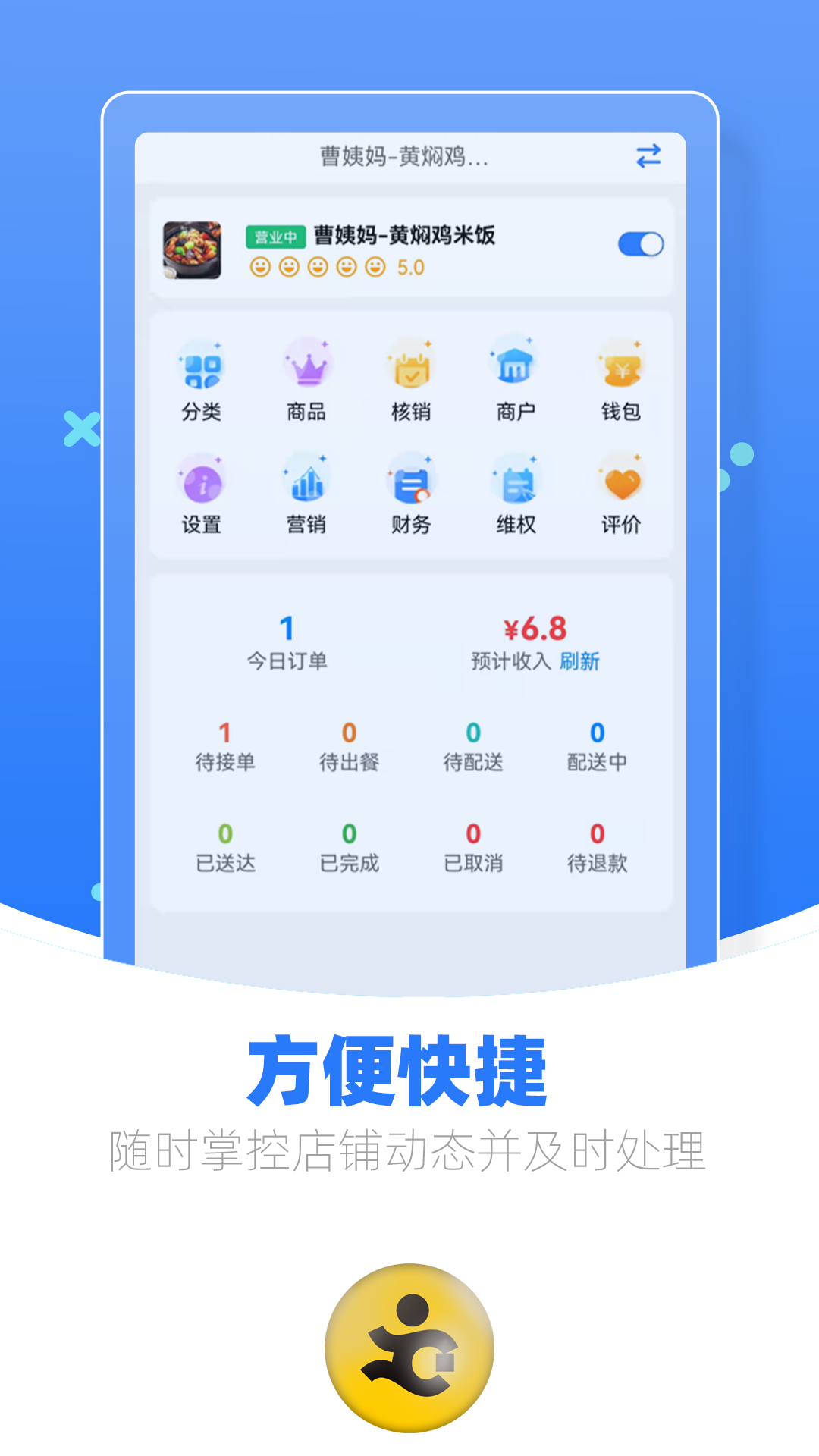优腿外卖商家端,商家专用的高效店铺管理软件。