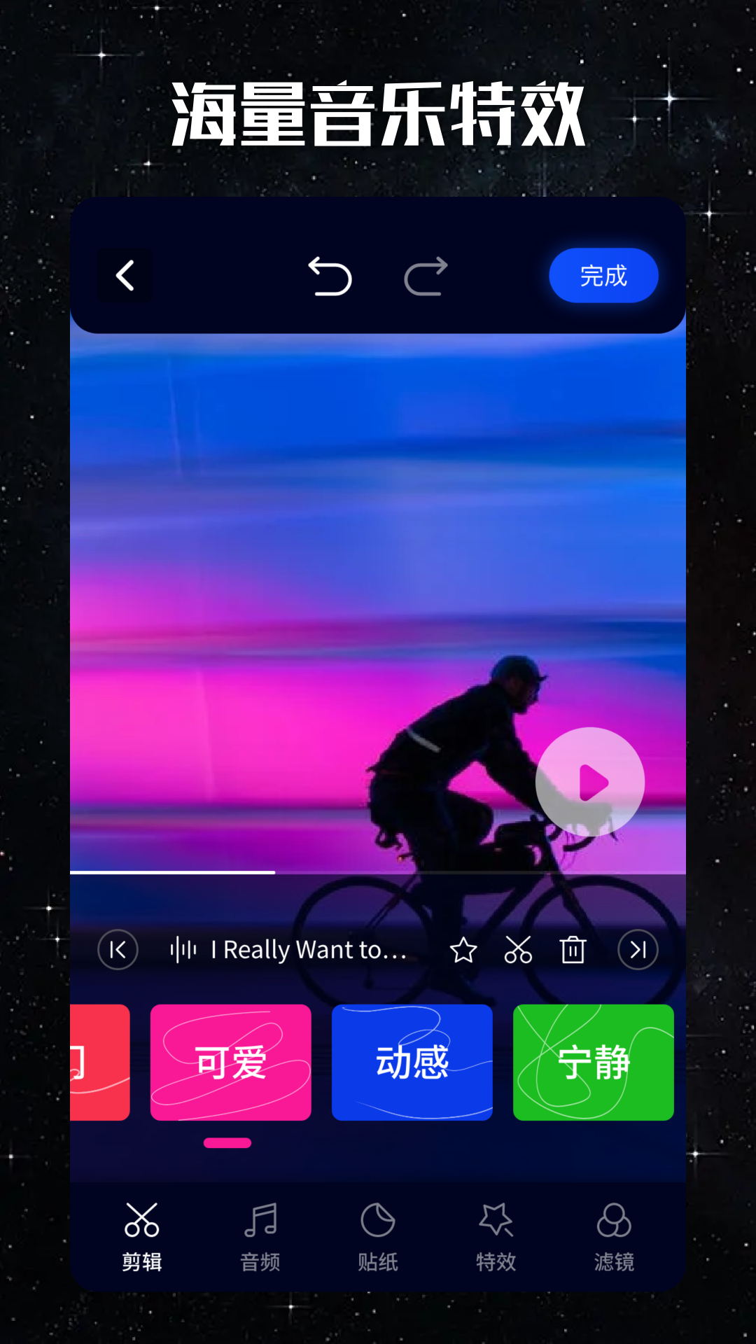 这款软件还配备了多种充满创意的特效工具,让您以一种简便的方式去体验专业的视频剪辑制作流程,使您在短短几分钟之内摇身一变成为短视频达人。