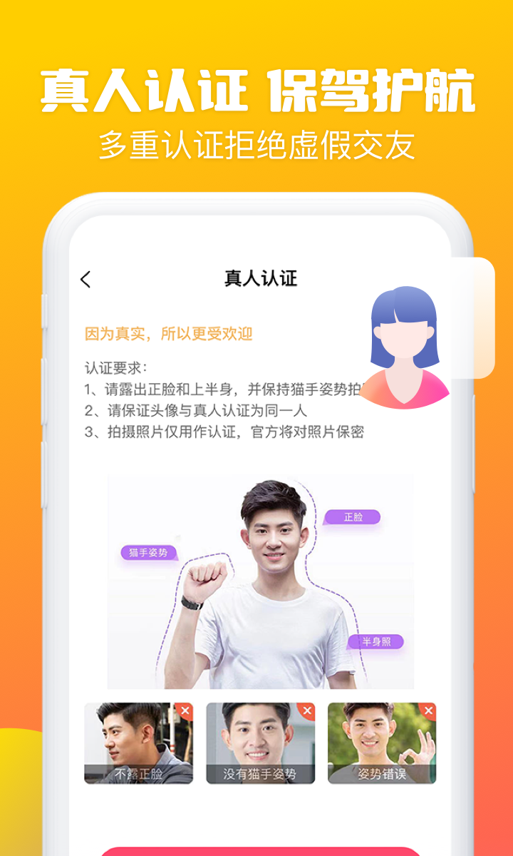 【真人认证】平台上都是真实的用户,坚决杜绝假照片的欺骗行为,从而确保你们的沟通互动更加深入、真诚又简单。