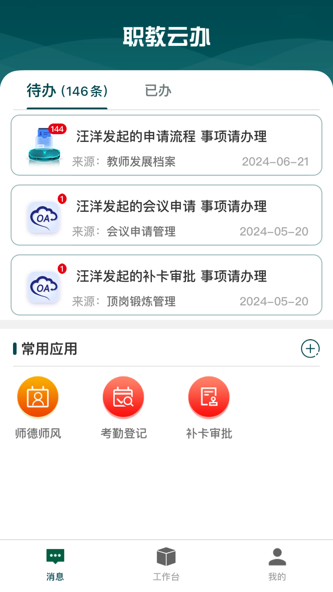 (1)支持我的待办、已办消息的展示。