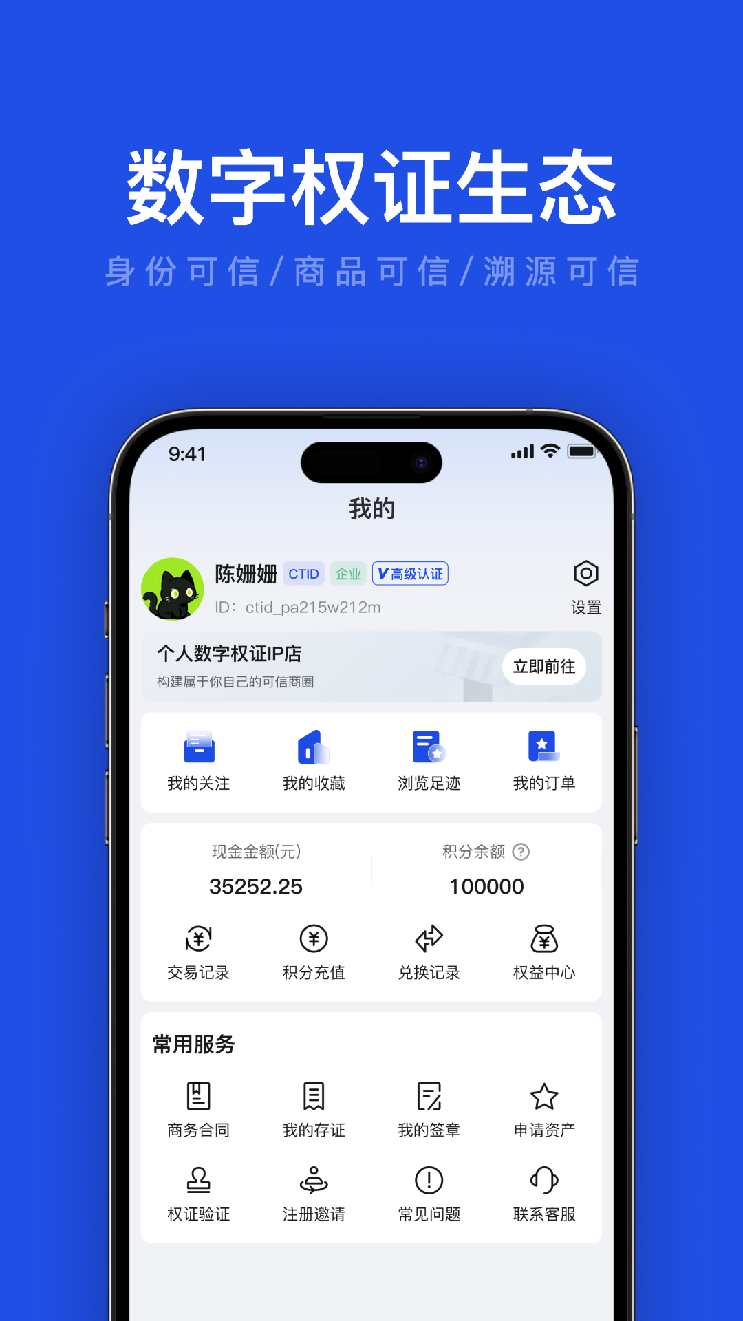 数字身份:以CTID(居民身份证网上功能凭证)与可信身份认证服务为基础,构建起全平台统一的身份认证体系。将个人数字身份确立为全平台的可信身份,从而创建出能够跨平台登录的可信账号。
