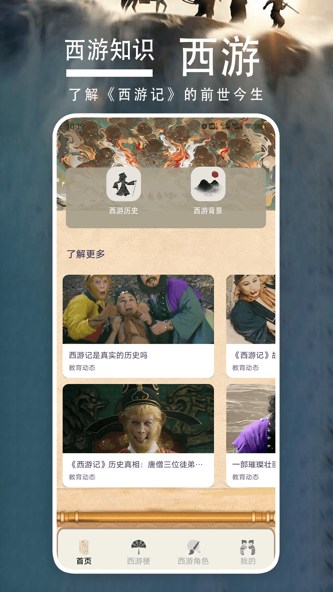 在这里,您可以全面地了解西游历史知识。同时,还有趣味十足的西游梗呢,那些经典的台词梗,您只要一键复制,就能够与伙伴们愉快互动啦。您是不是能认出所有的西游角色呀?快来测试一下,看看自己是不是一名合格的西游迷吧。