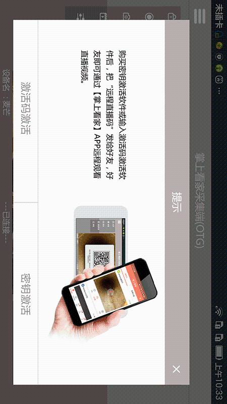 - 在已经连接了USB摄像头的手机上安装“OTG版采集端”,然后使用之前购买的激活码激活该软件。