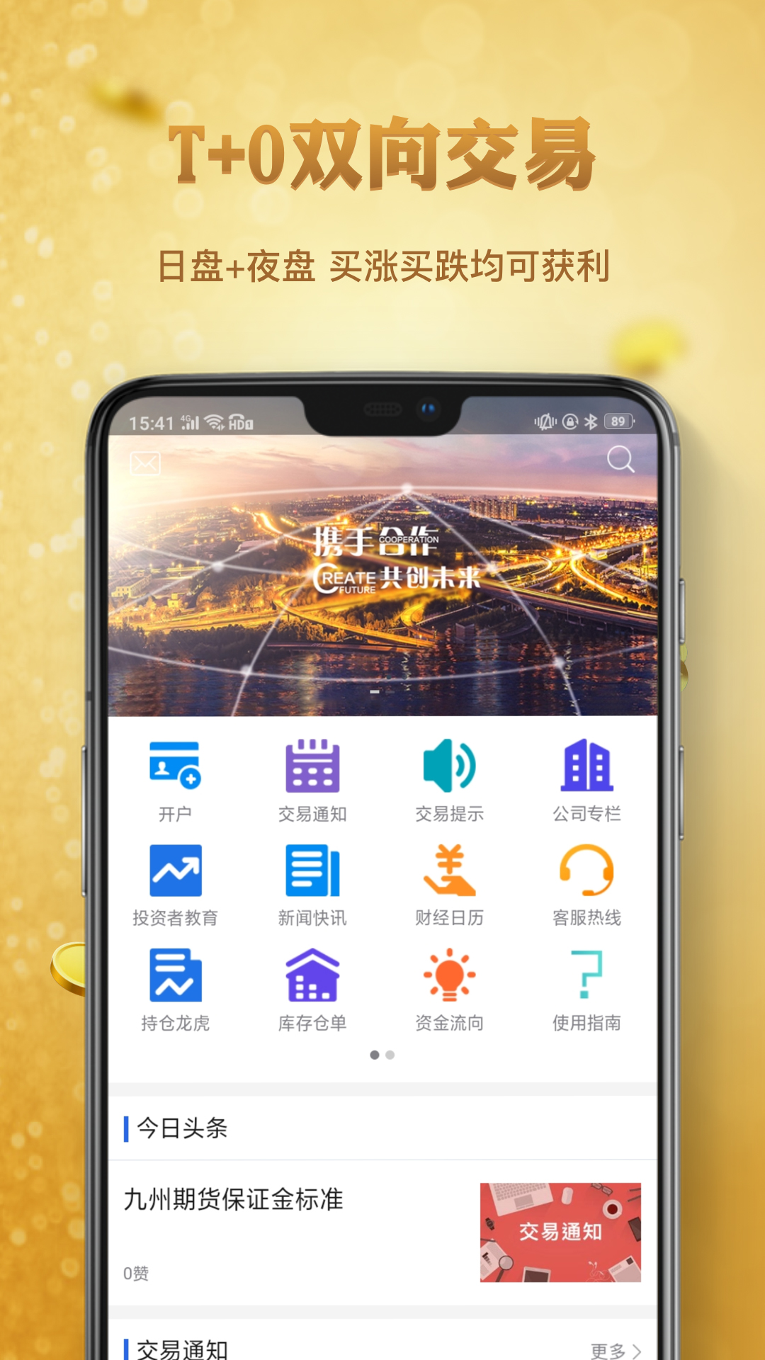 九州期货APP是集期货行情、期货交易、网上开户、金融行情资讯等功能于一体的国内综合金融服务平台,可交易的期货产品包含:贵金属、黄金、白银、原油、石油、铜、沥青、玉米等。