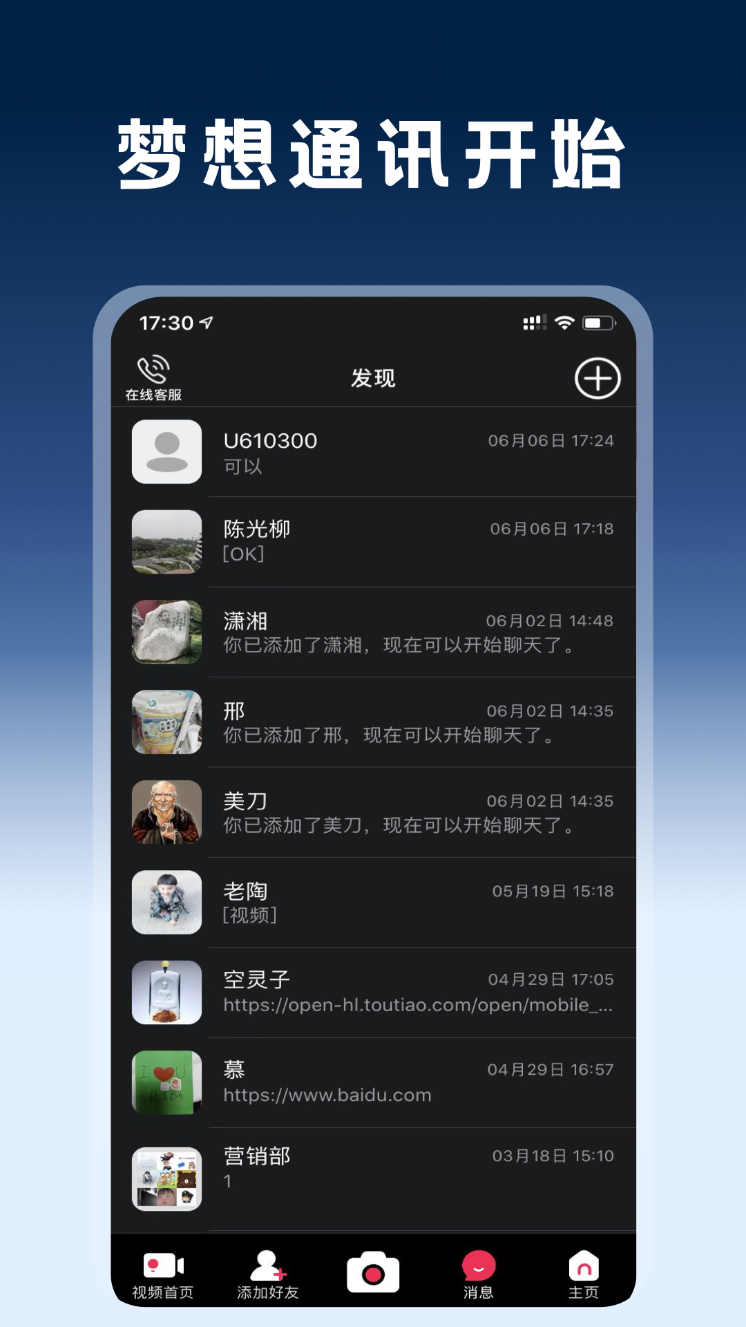 短视频发布、视频购物、发起群聊、添加好友、视频通话、语音通话、语音转发、语音转文字、朋友圈、短视频交友、陌生人的朋友圈不尴尬,沟通无压力,office4大类文档互传、支持办公、新的生态圈,私密性强。