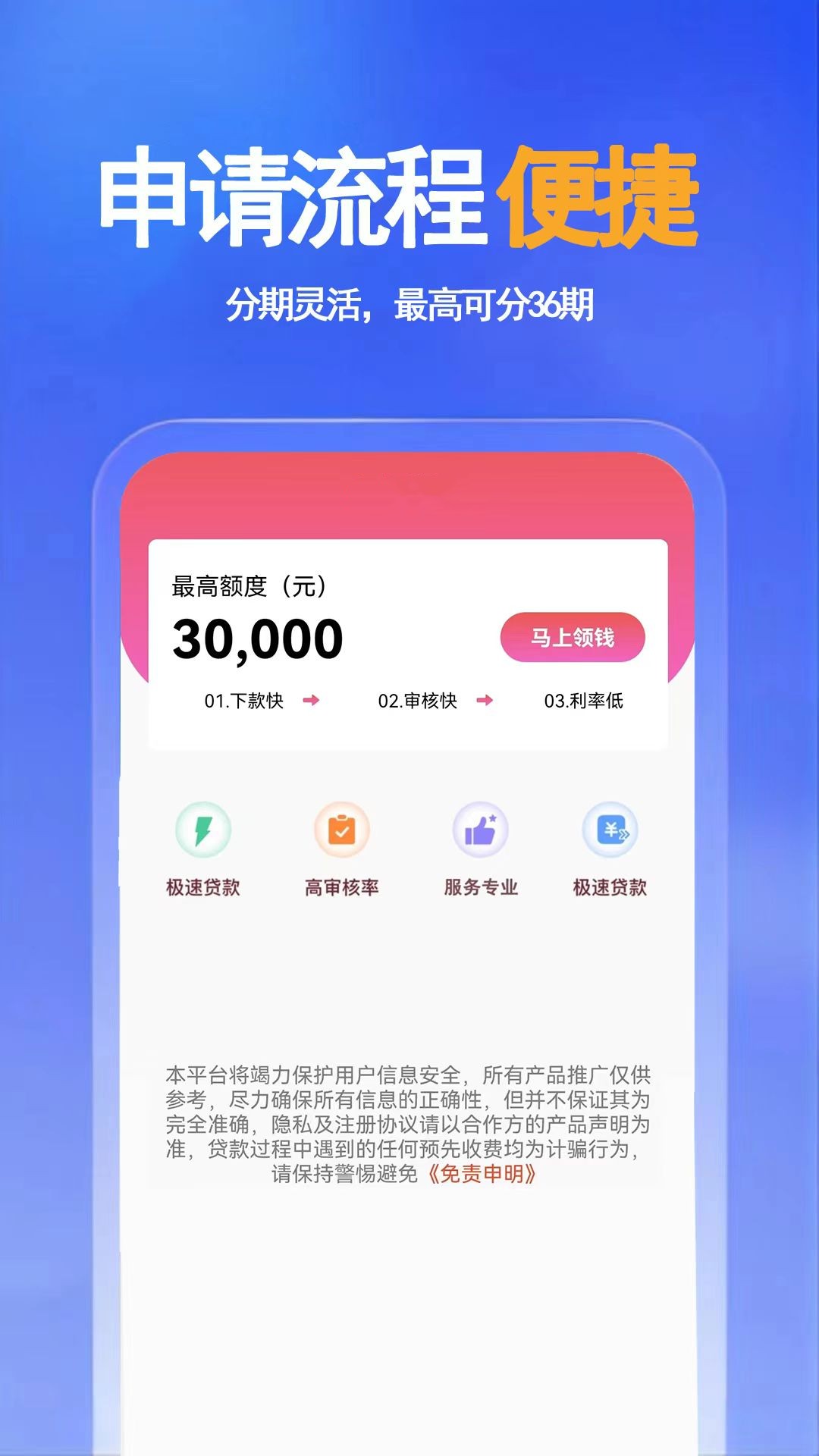 1.方便快捷:借款贷款全程线上申请,无需担保抵押;
