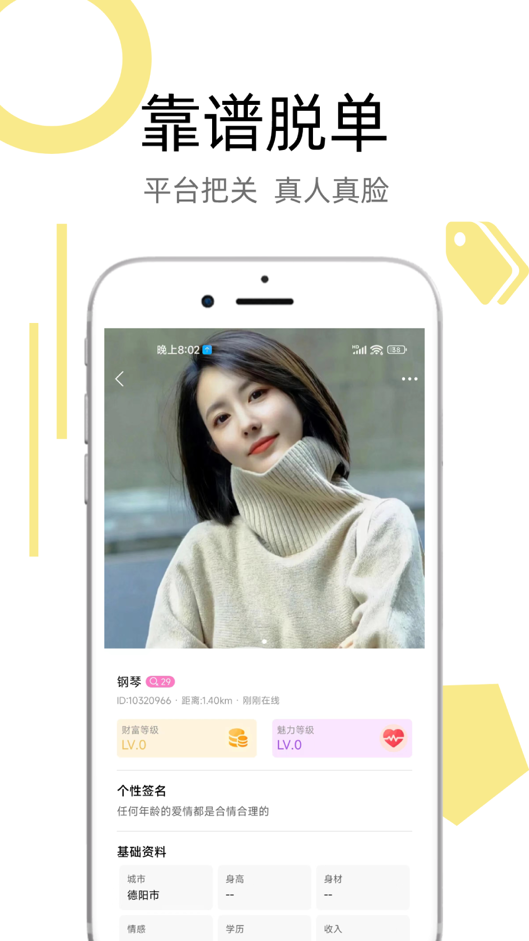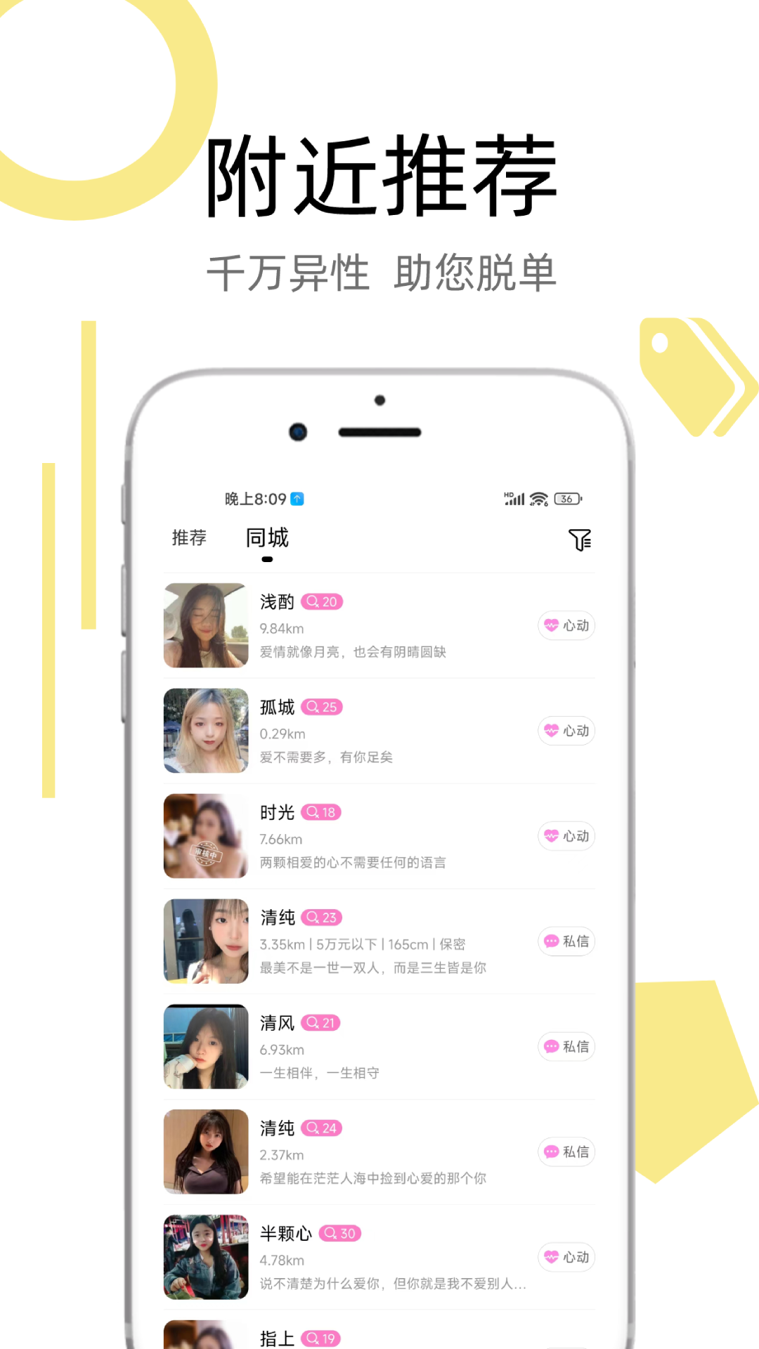 附近有约,一个真实高效的脱单平台,海量单身男女的共同选择!
