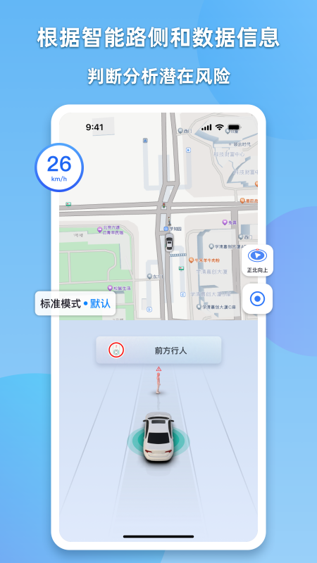 智能语音提示与界面相结合,达成驾驶员和行人的协同式辅助驾驶。