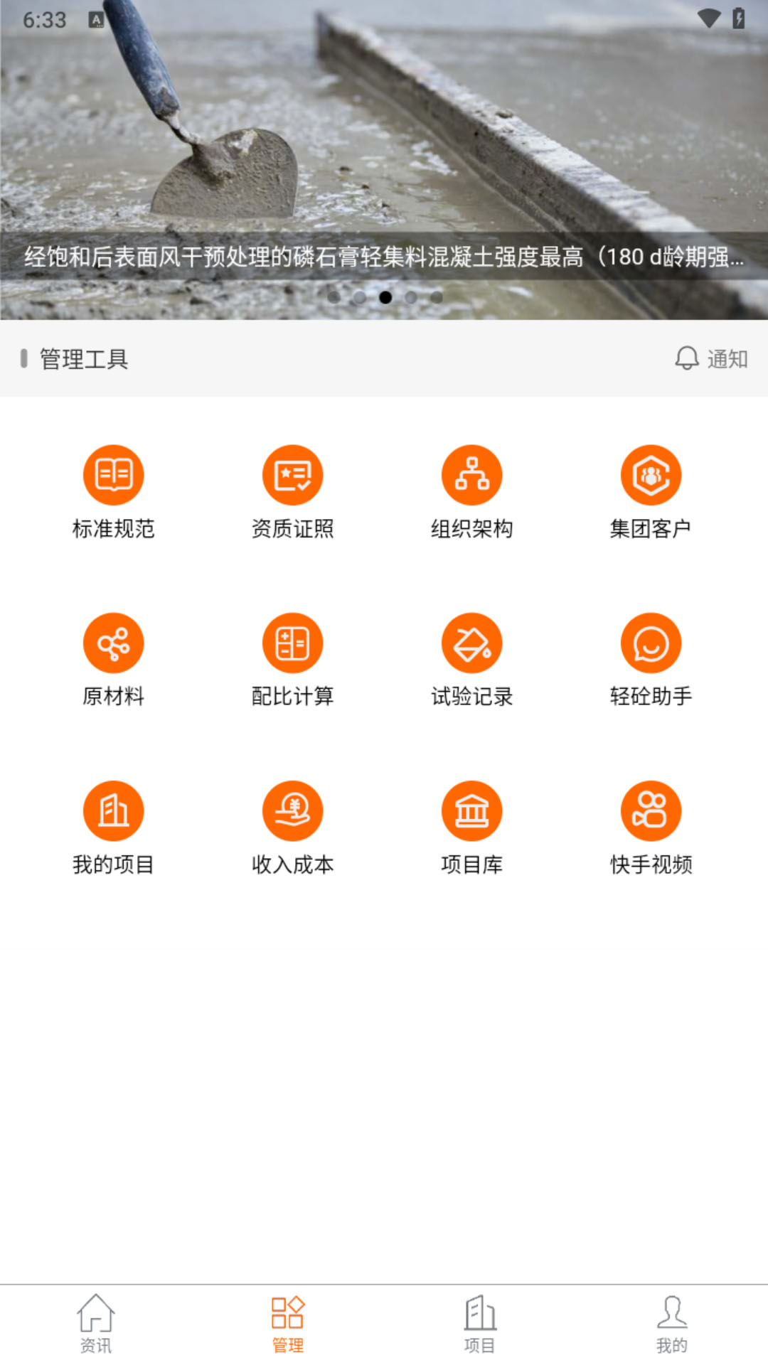 轻砼APP融合了诸多功能,像轻质混凝土资讯、项目信息、工程成本管理、配合比计算、联系人管理以及交流互动等功能应有尽有。
