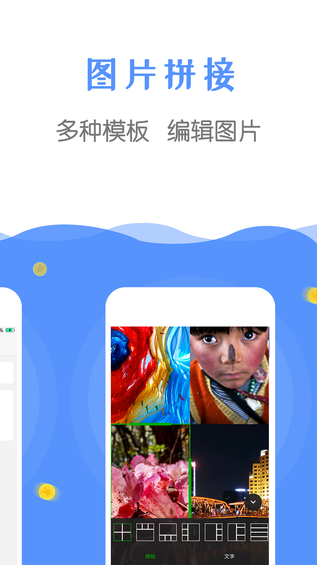 【图片拼接】支持多模板图片编辑,添加文字水印;