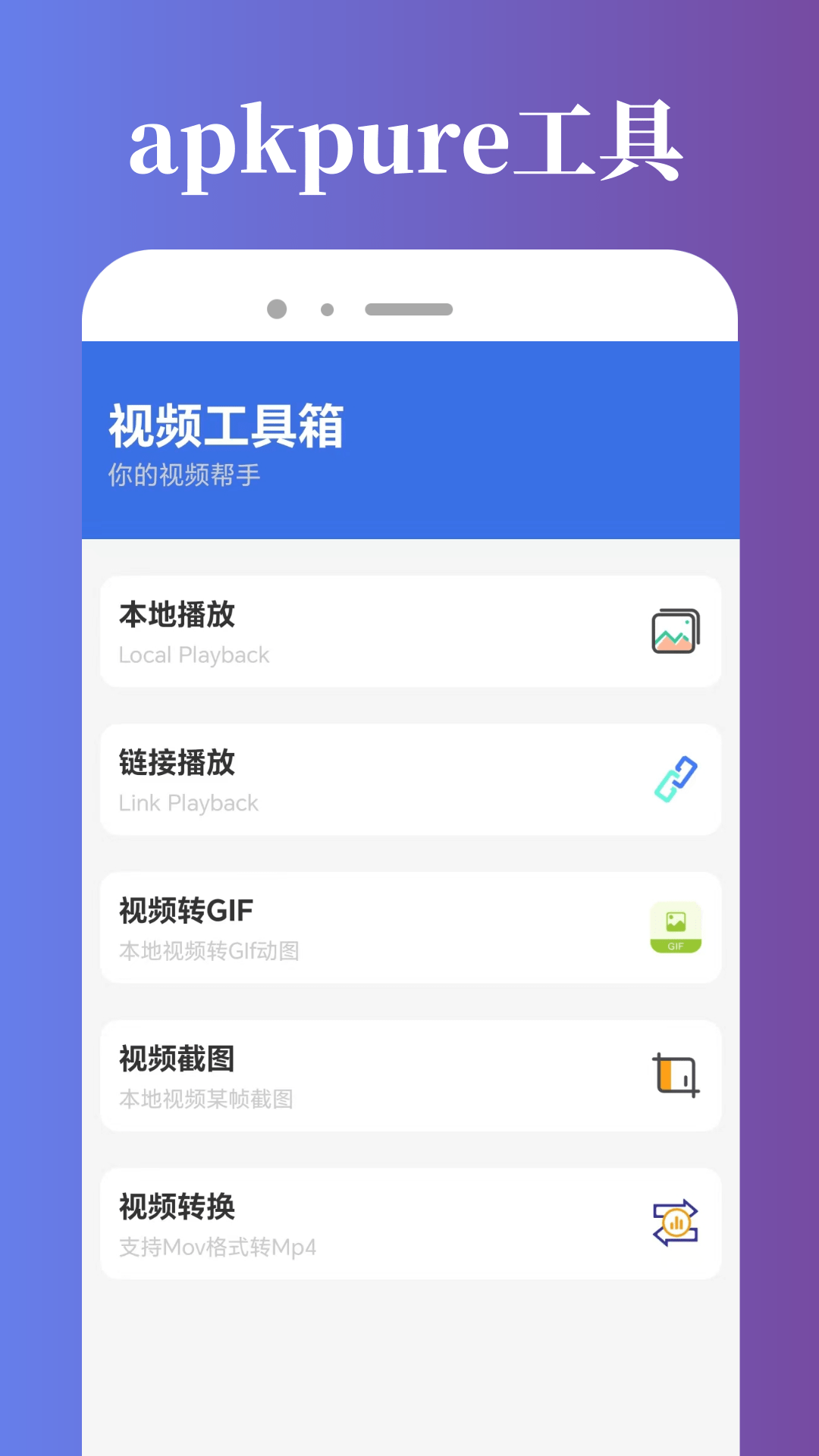 【视频功能】提供本地视频播放、链接播放以及视频处理助手等多种功能。