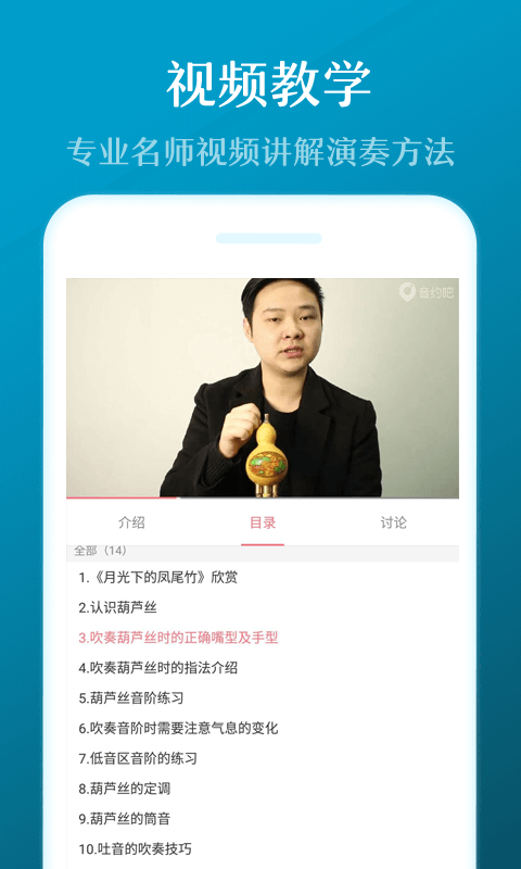 葫芦丝APP是由国内知名音乐品牌“音约吧”团队精心打造的一款葫芦丝入门APP。这是一款支持同步学习葫芦丝曲谱的APP哦!