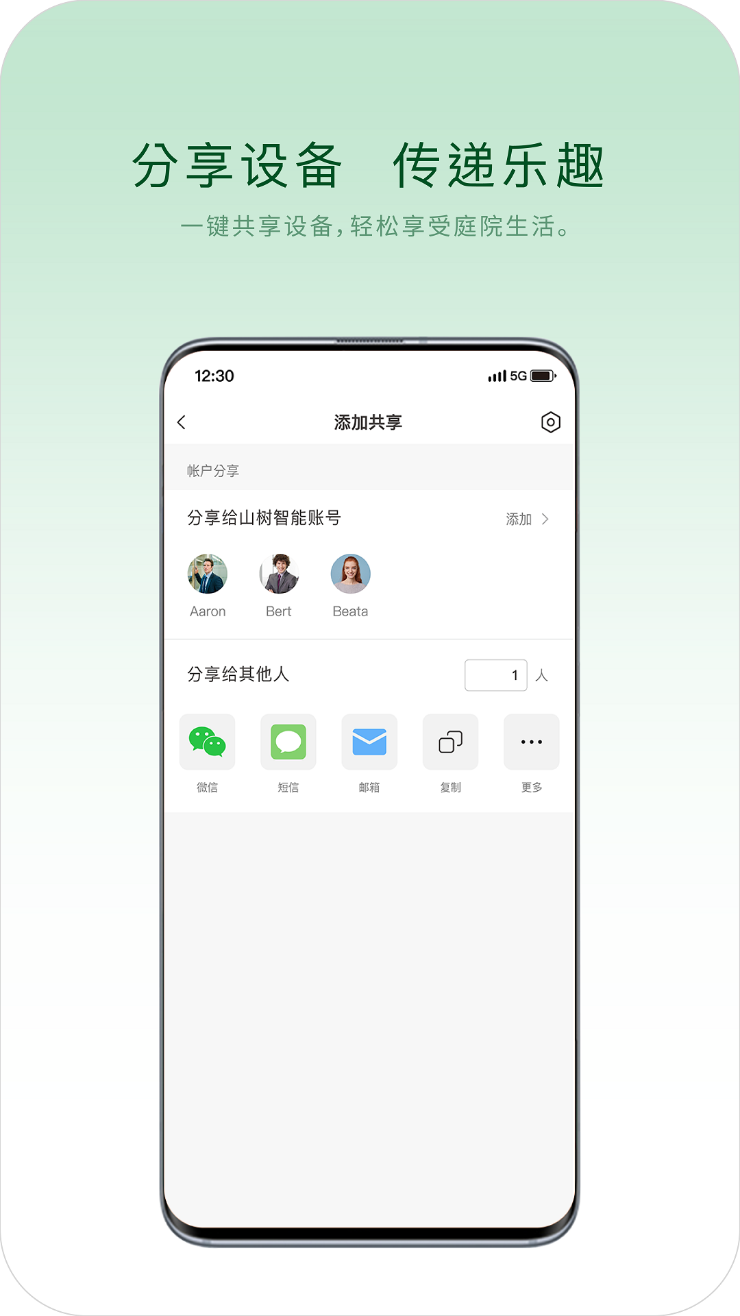 一键分享设备,惬意畅享园林生活。