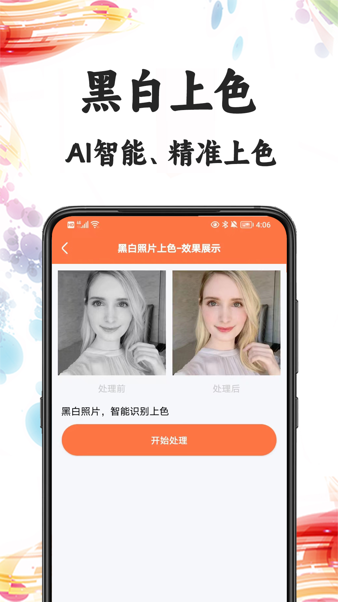上传黑白照片后,通过智能识别上色技术,能够为黑白照片上色,还原人物与环境的色彩,让黑白照片焕发出新的生机。