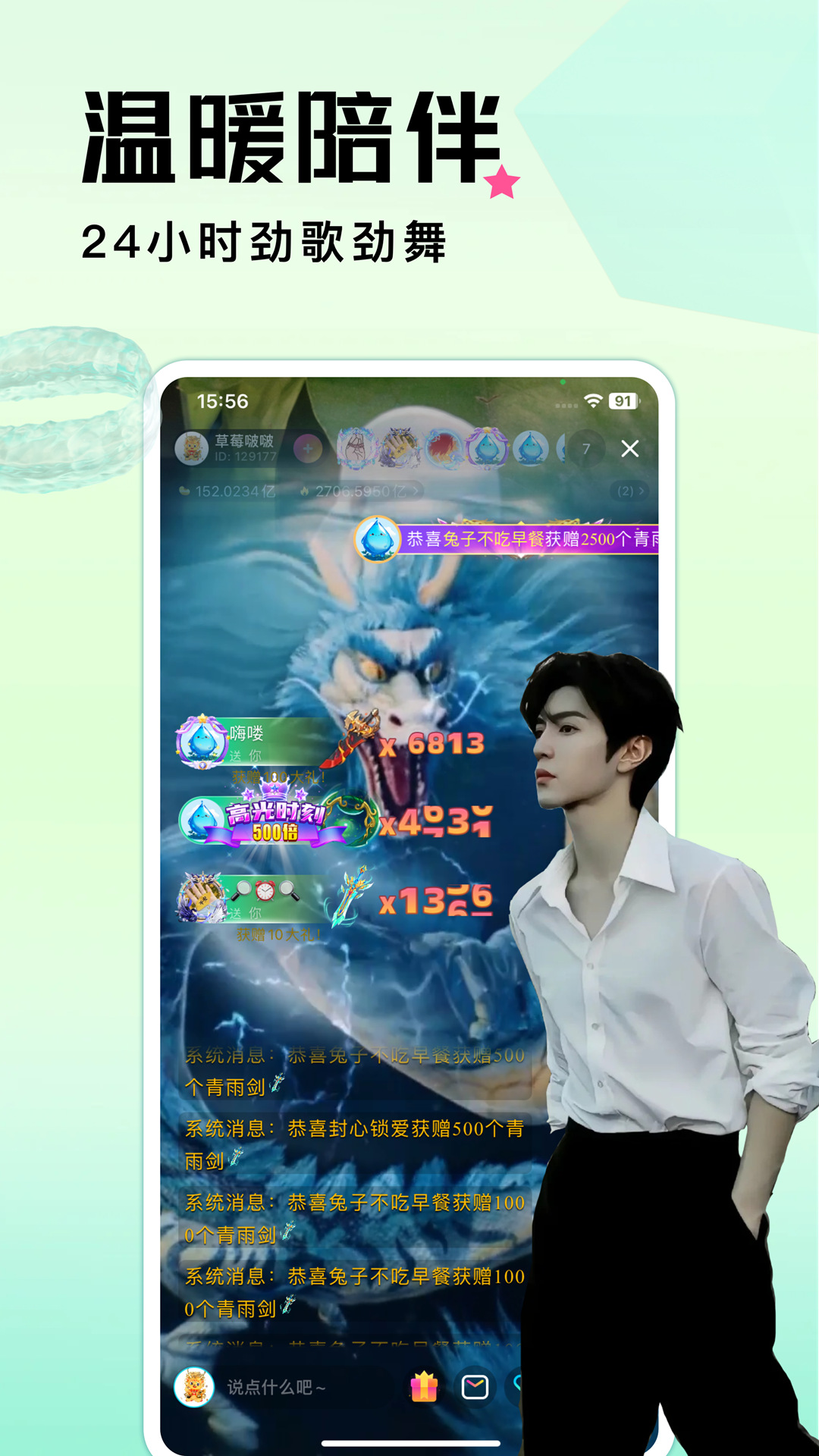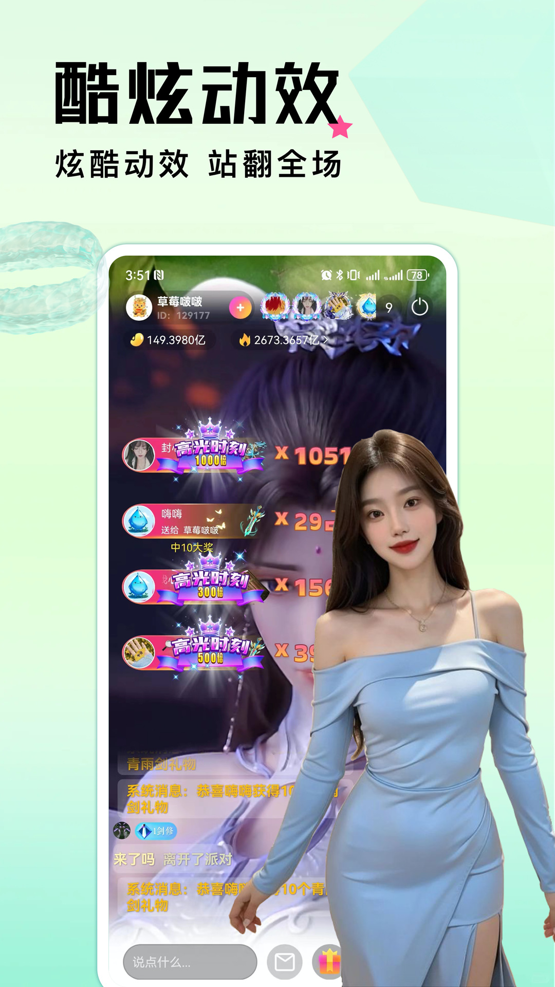 在美女主播的直播间里发送祝福语,那么就可以发送给她,接下来就会有很多人回复你发送祝福语