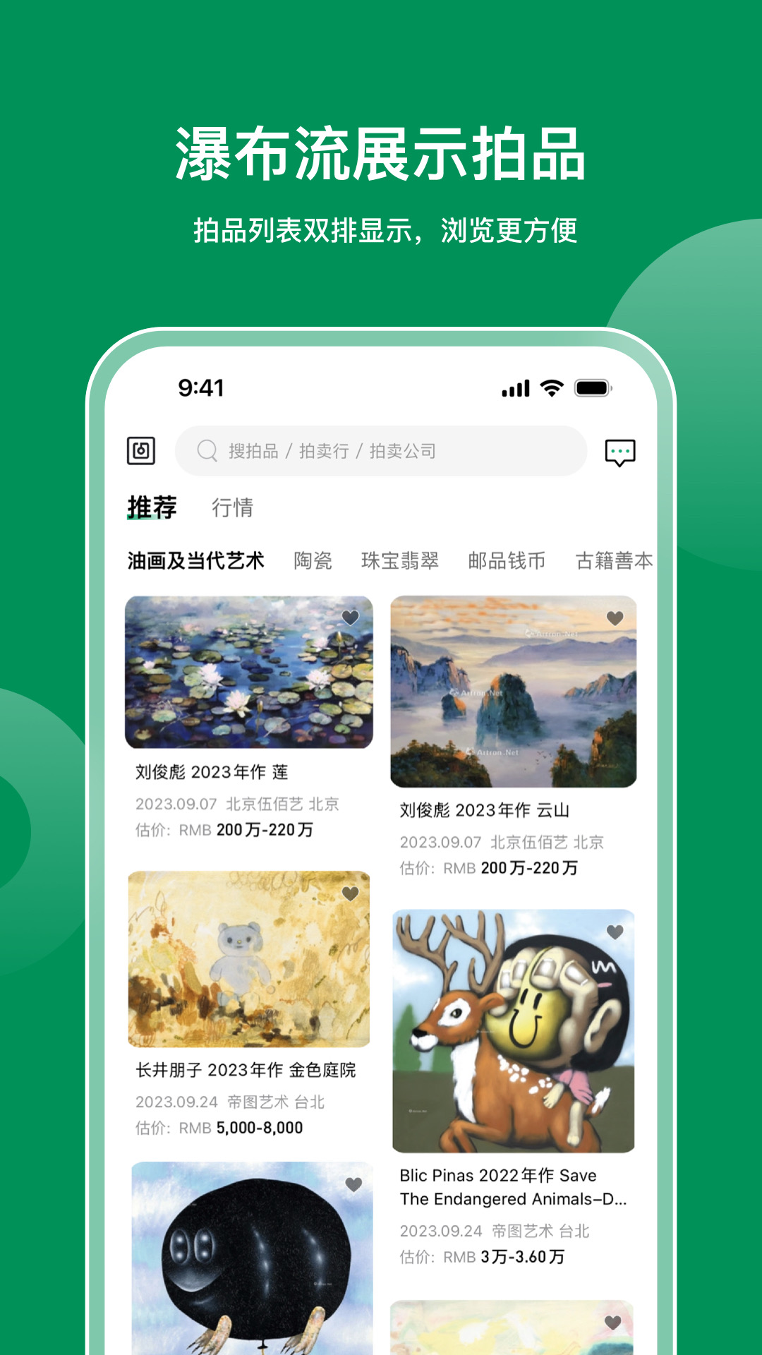 “专属我的图录”:可一键加入我的图录,通过自定义文件夹进行管理,生成自己专属的图录。具有直观的对比分析功能,收藏分享也很便捷,还有热门精彩图录推荐,让用户尽情享受拍卖的乐趣。