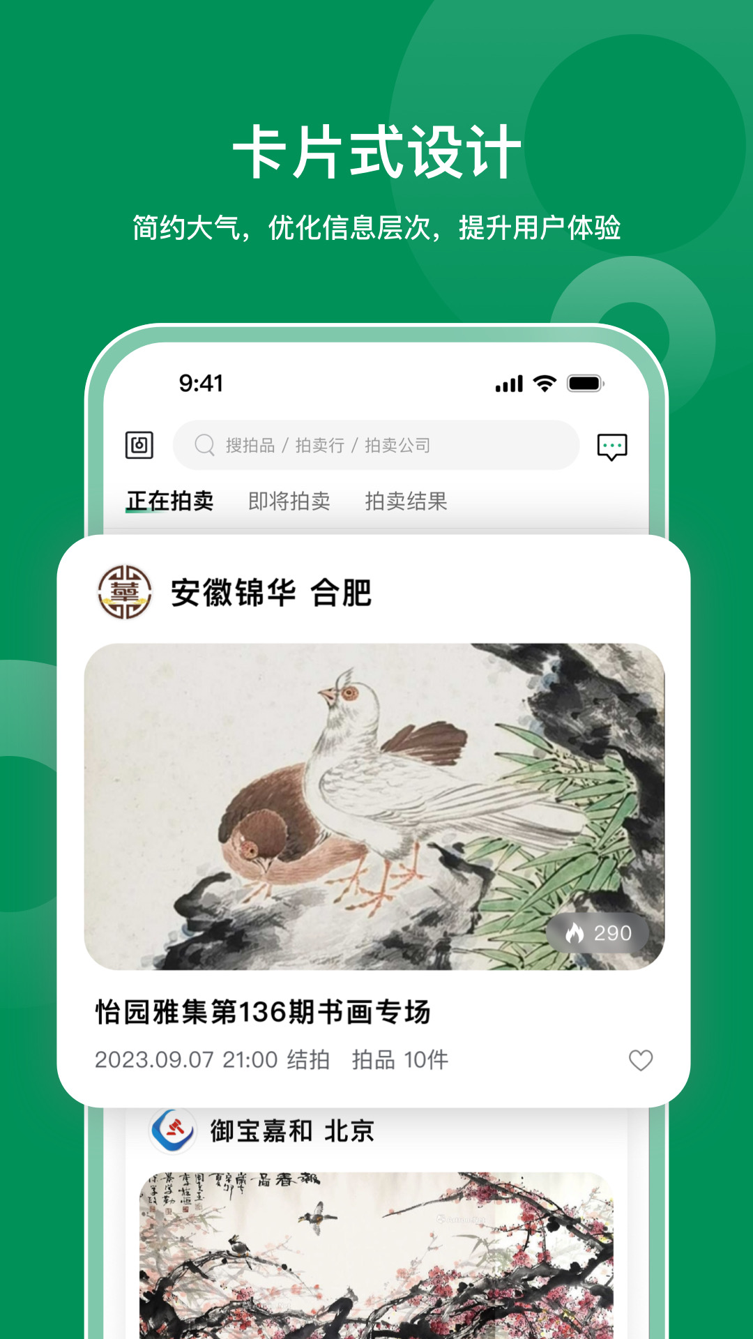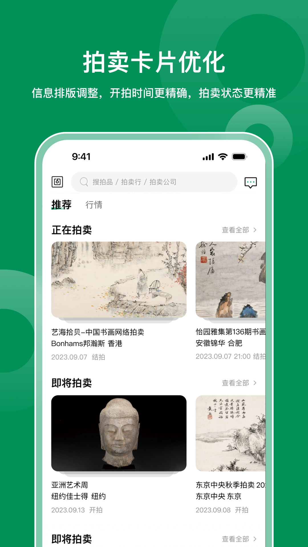 “功能强辅助功能”:能够方便快捷地查看拍卖预展信息,进行多维度搜索和多维度数据筛选。其天干地支换算、货币换算、平尺换算等小工具非常实用,功能强大、便捷易用。而且拍卖直播能够让用户直击各大拍卖公司拍卖会现场,足不出户就能感受拍卖现场的实况。