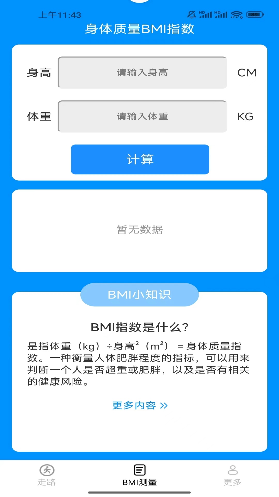 【BMI测量】输入你的身高和体重,测量你的BMI值。