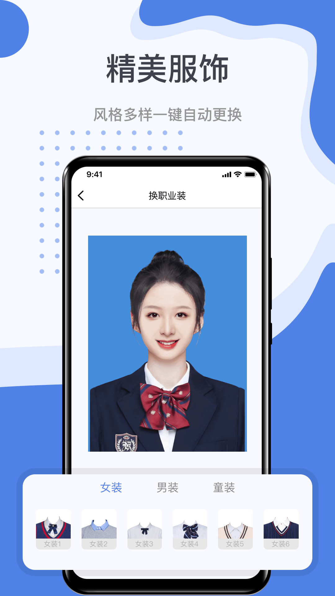 证件照换装-超实用的好功能,没有正装不要怕,不管是男人,女人或是儿童这里有精选的正装可以一键切换,并支持手动调节衣服人像大小!