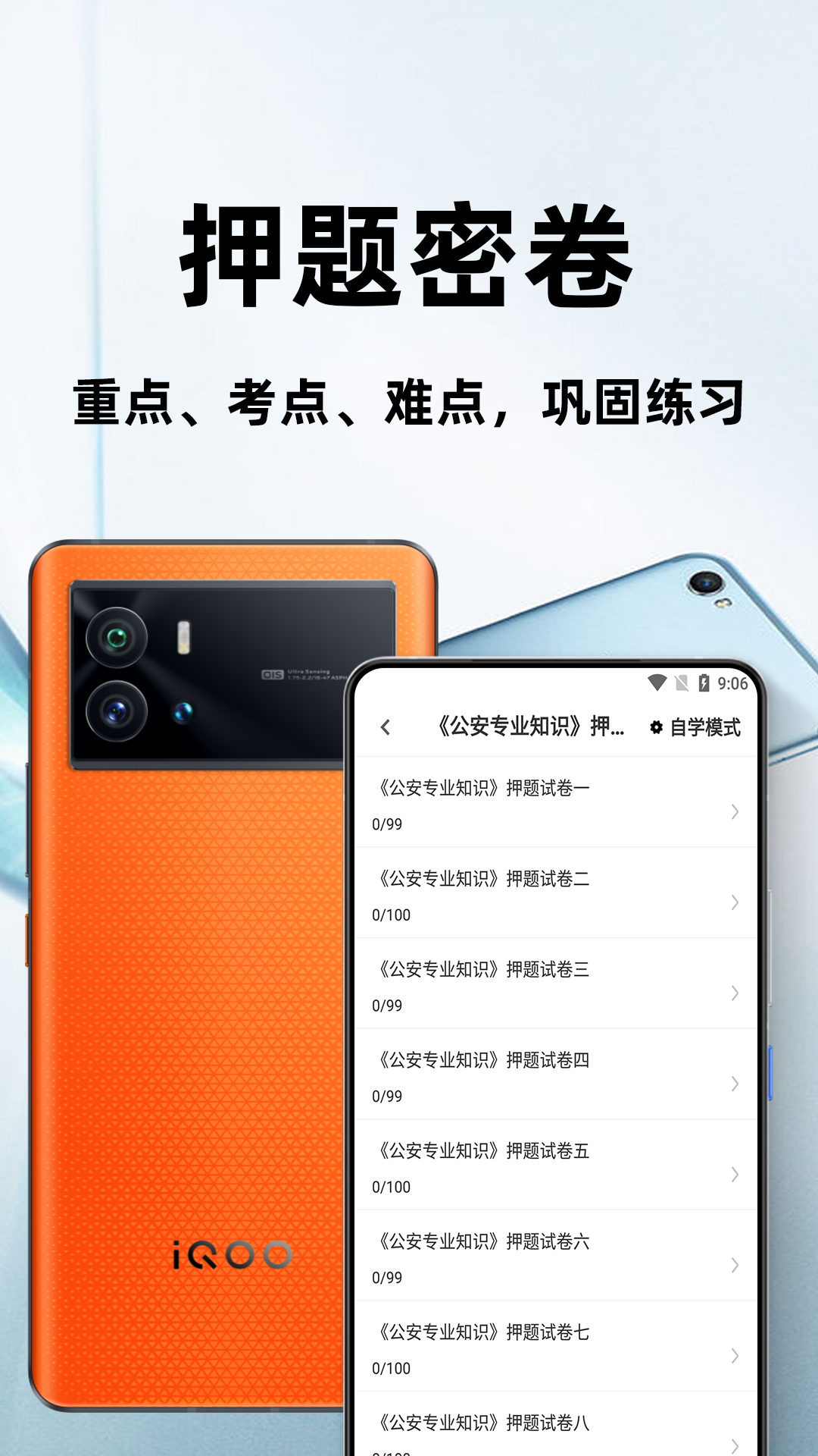 本软件为2024年辅警招聘考试题库软件,根据新大纲,精心准备的精品题库。包括章节练习+模拟押题+历年真题,并有答案解析。为考试的提供了充分的复习准备,可随时随地学习练习,有效帮助顺利通过考试.