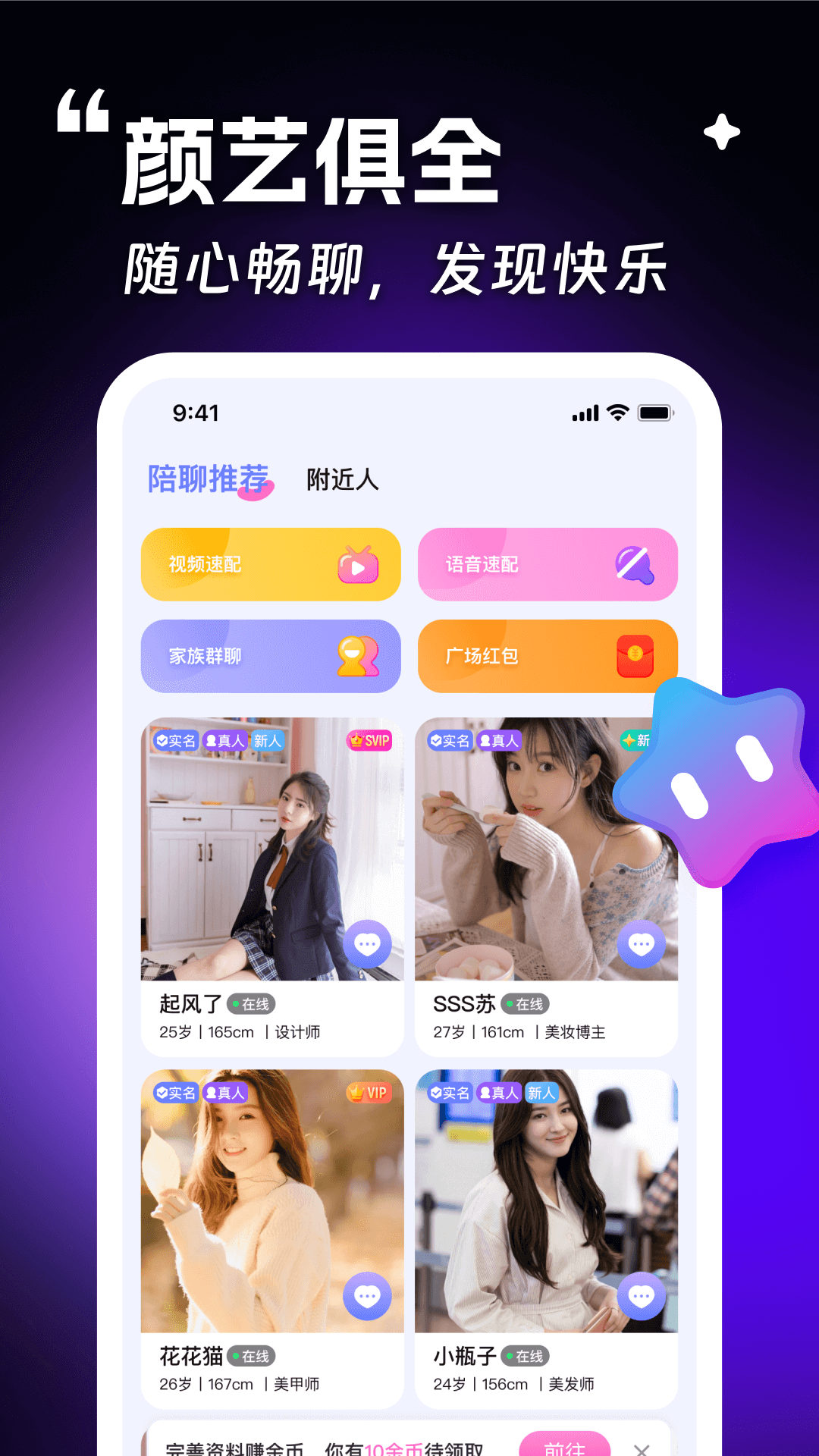 趣约她是一个能让你通过文字、音视频等多种形式,邂逅与自己趣味相投之人的地方。在趣约她的海量用户里,你能够迅速筛选出有趣的人。