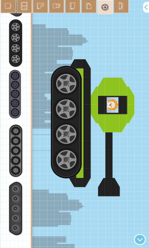 在应用中,小朋友可以通过模版快速创造各种经典汽车(包括小汽车、消防车、警车、怪兽车、赛车跑车、拖拉机、大巴、挖掘机、月球车、压路车、坦克等等等等),或者自由拼装,随意搭建各种充满想象力的汽车。