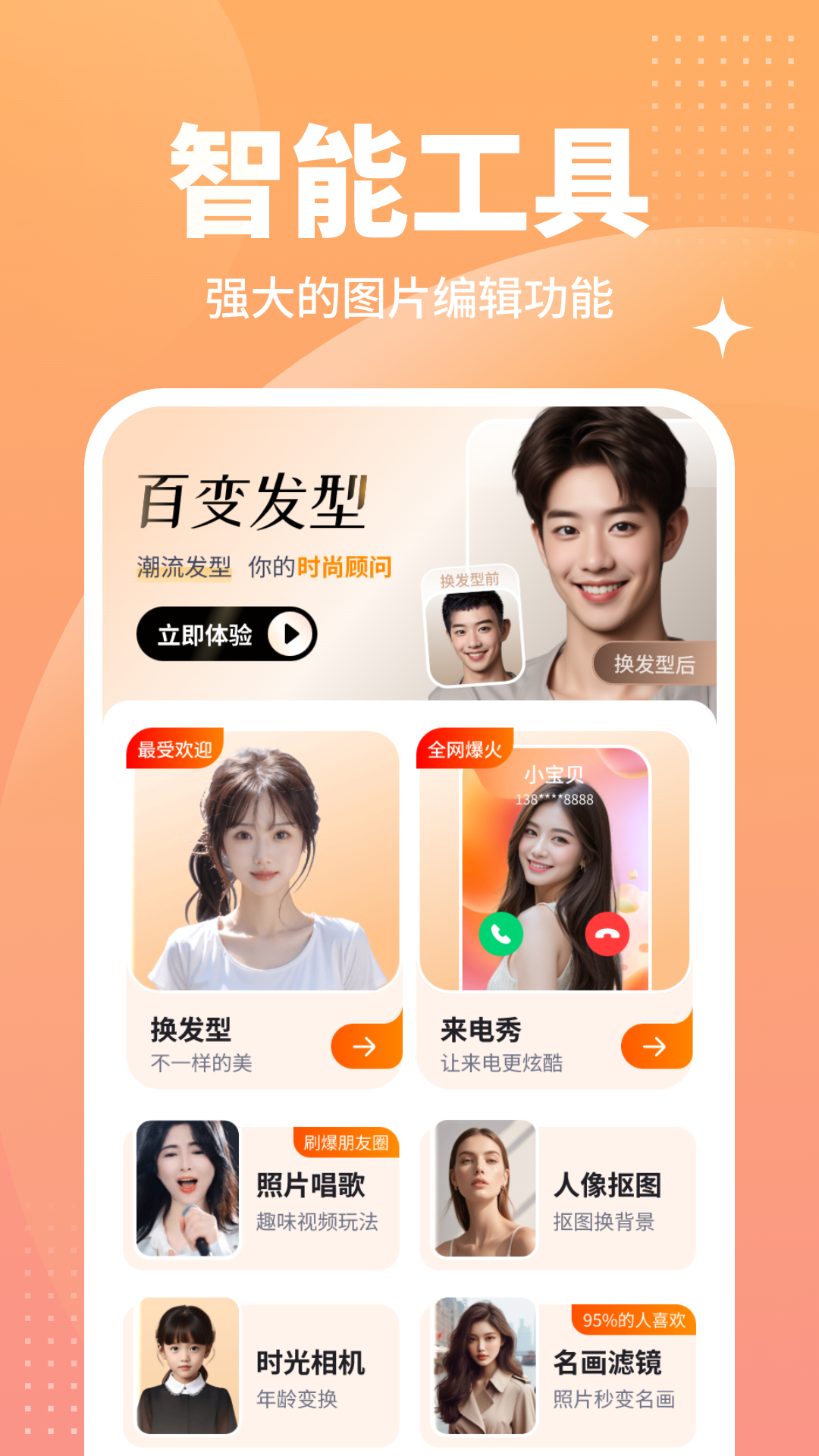 想要尝试新发型却又怕剪坏?美忆相机来帮您!海量发型模板,从复古到前卫,一键试戴,轻松找到最适合您的那一款,让美丽不再等待。