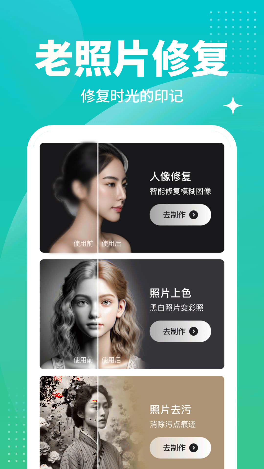 珍贵的老照片因岁月而泛黄模糊?美忆相机运用先进算法,智能修复老照片,还原色彩与细节,让回忆更加清晰动人,仿佛昨日重现。