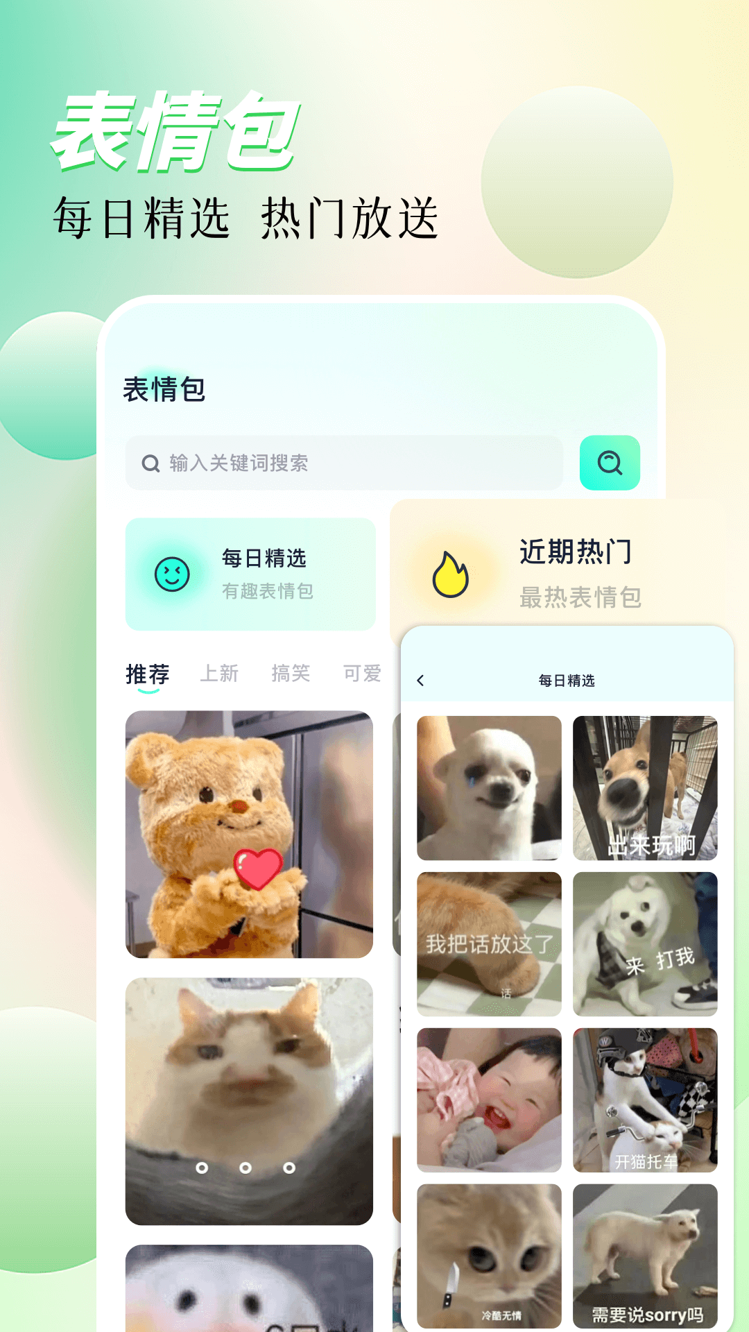 表情包专区可是汇聚了海量热门表情包。每日精选的表情包能让您第一时间获取新鲜有趣的表情素材,近期热推荐的则能让您紧跟潮流,上新的表情包也能让您总是拥有最新颖的选择,还有蘑菇头、搞笑等各种类型的表情包,有了它们,您的聊天会变得更加生动有趣,充满活力。