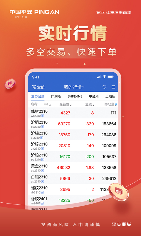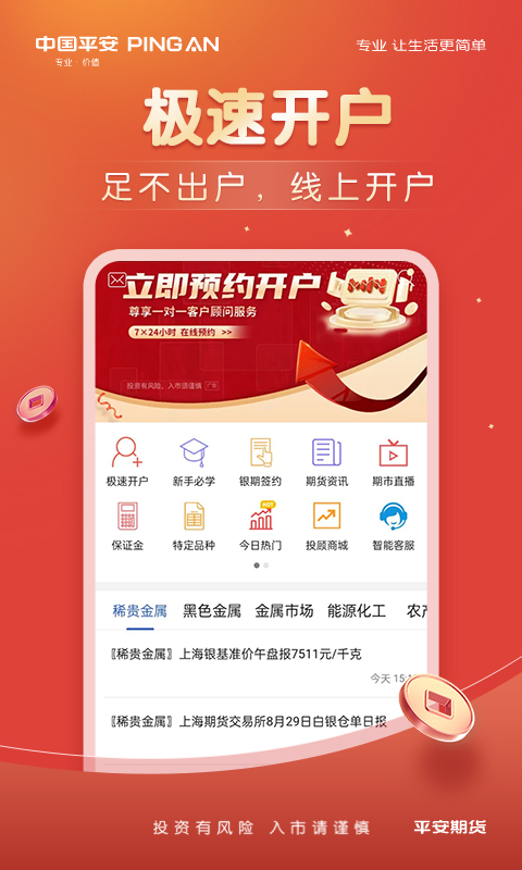 平安期货博易APP是平安期货为投资者全新打造的移动智能终端,它能够全方位地服务于期货等金融投资客户。在这个APP上,客户可以进行期货开户,查看行情,开展期货交易,查询账号,进行银期转账,还能获取资讯等服务。