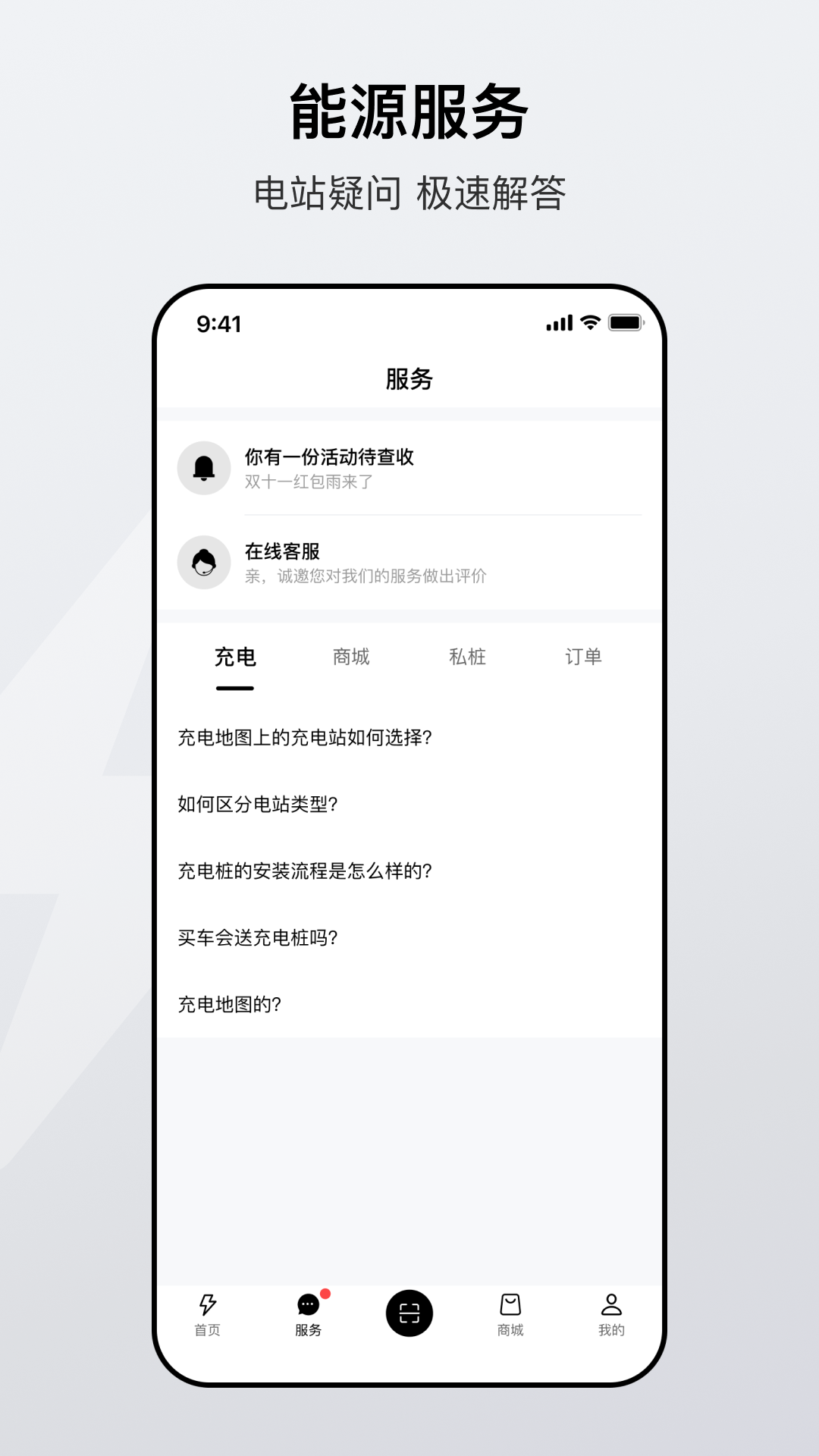 提供包括 ”智能推荐,扫码充电,场站搜索,筛选和查询( 电价,空闲,地址,图片 ),即插即充,扫码启动,自动计费,在线开票,私桩管理“等基础服务,帮助新能源车主便捷,快速地找到可靠的设备进行补能,缓解出行焦虑