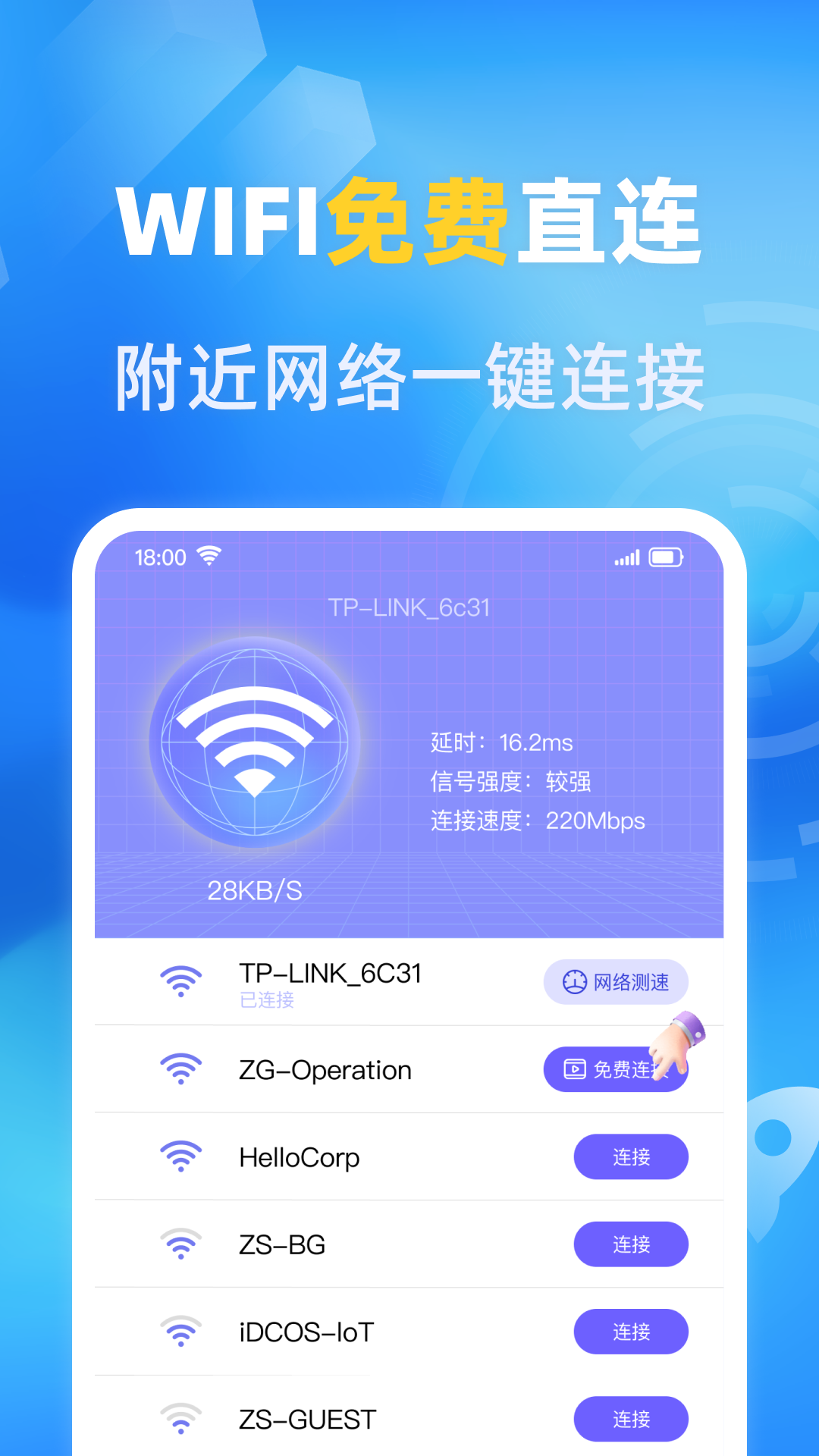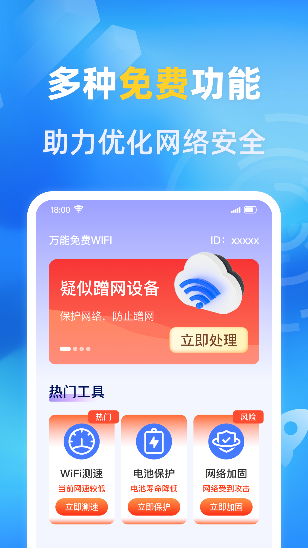 万能免费wifi是您身边的网络管家,汇聚信号增强、防蹭网、网络加固和Wi-Fi卫士等多重功能于一体。