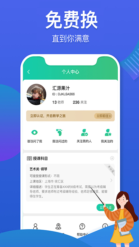 对学生而言,可以匹配到距离自己500米以内,甚至就在楼上楼下的老师,这样就为家长节省了接送或者陪伴孩子的时间。