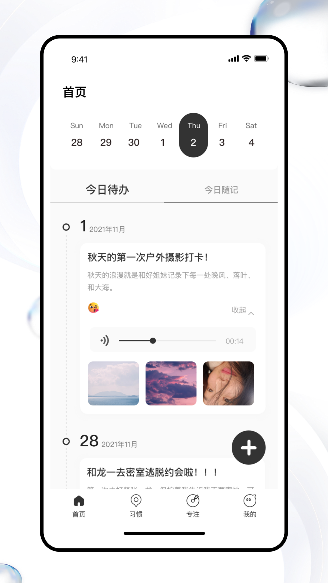 【今日随记】功能为用户提供了方便的随记服务。借助这个功能,用户可以轻松记录生活中的各种灵感瞬间、重要信息,以及突然发生的事情。